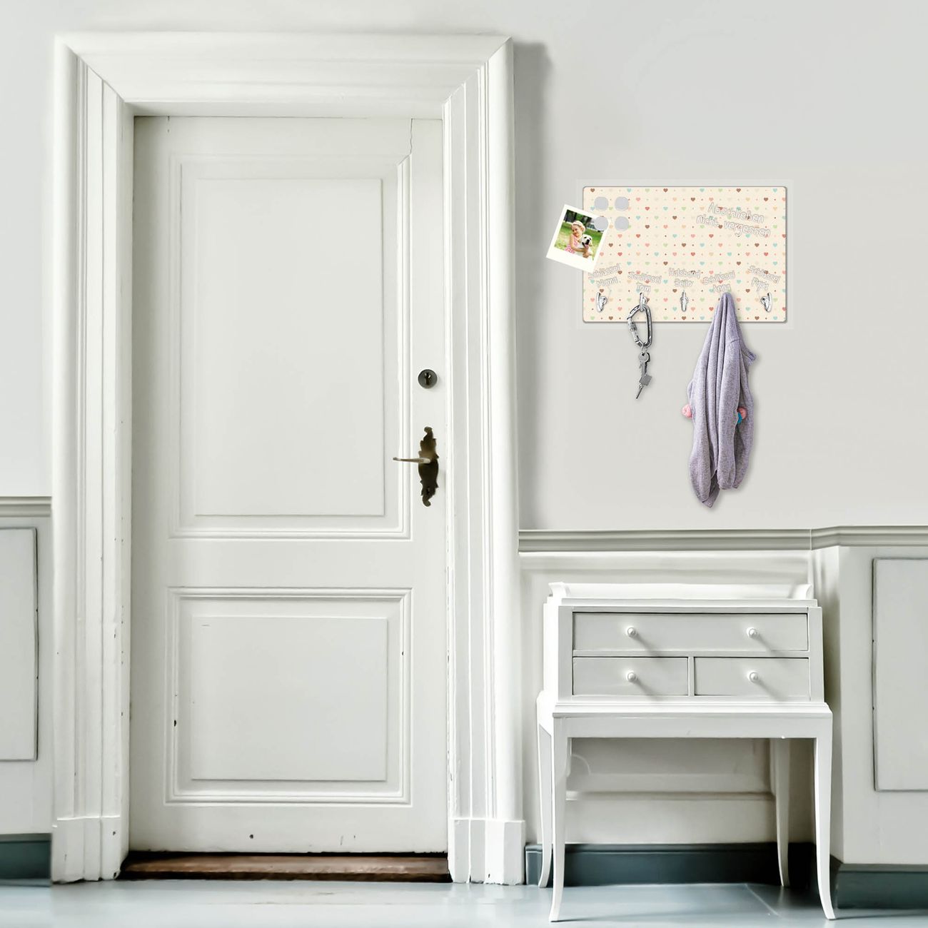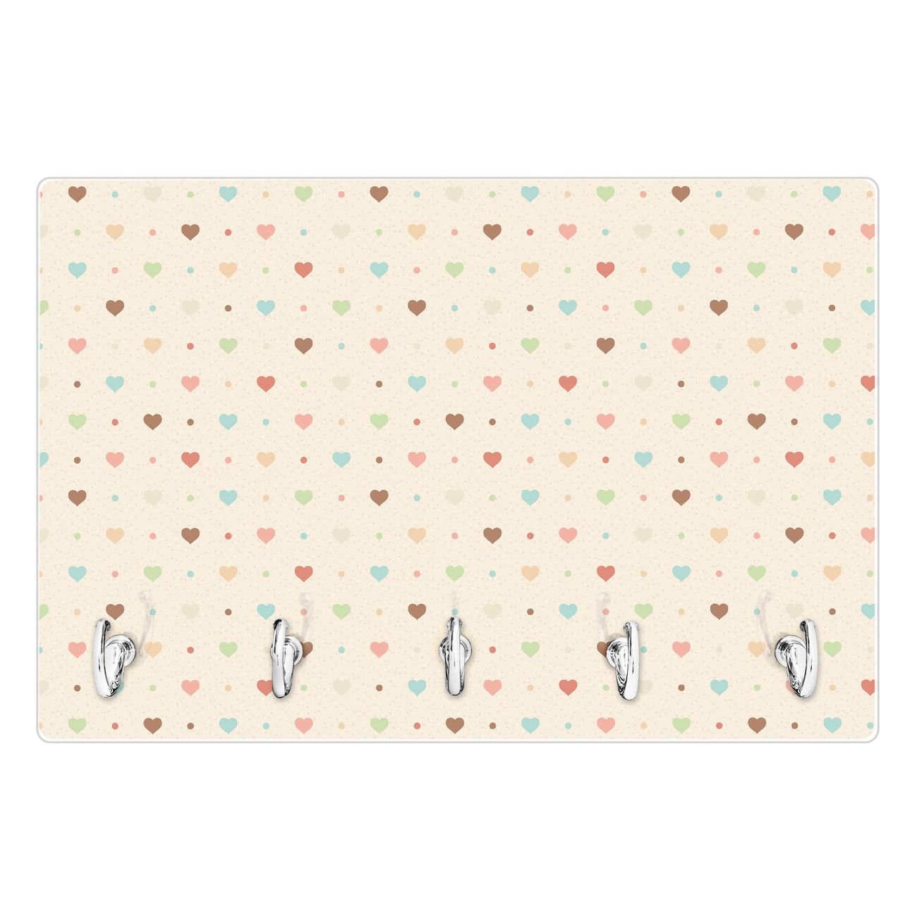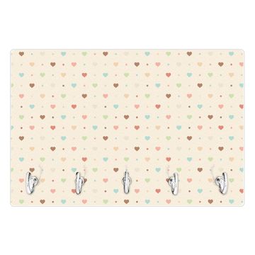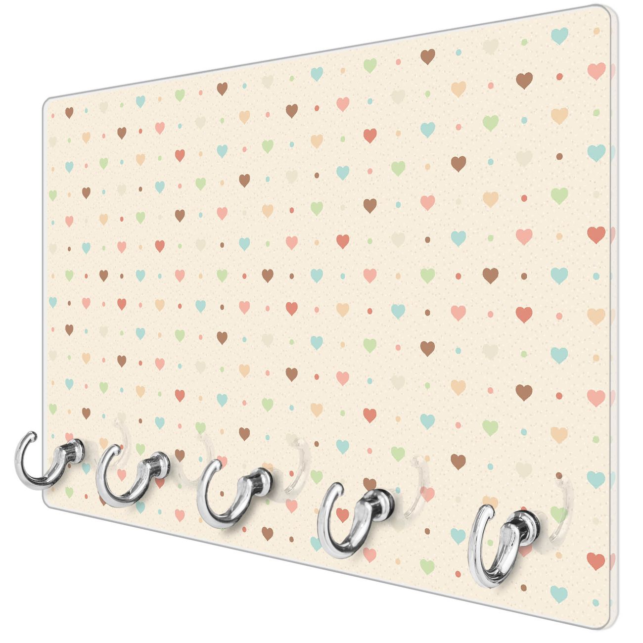 Glas Schlüsselbrett mit 5 Haken Herzen bunt