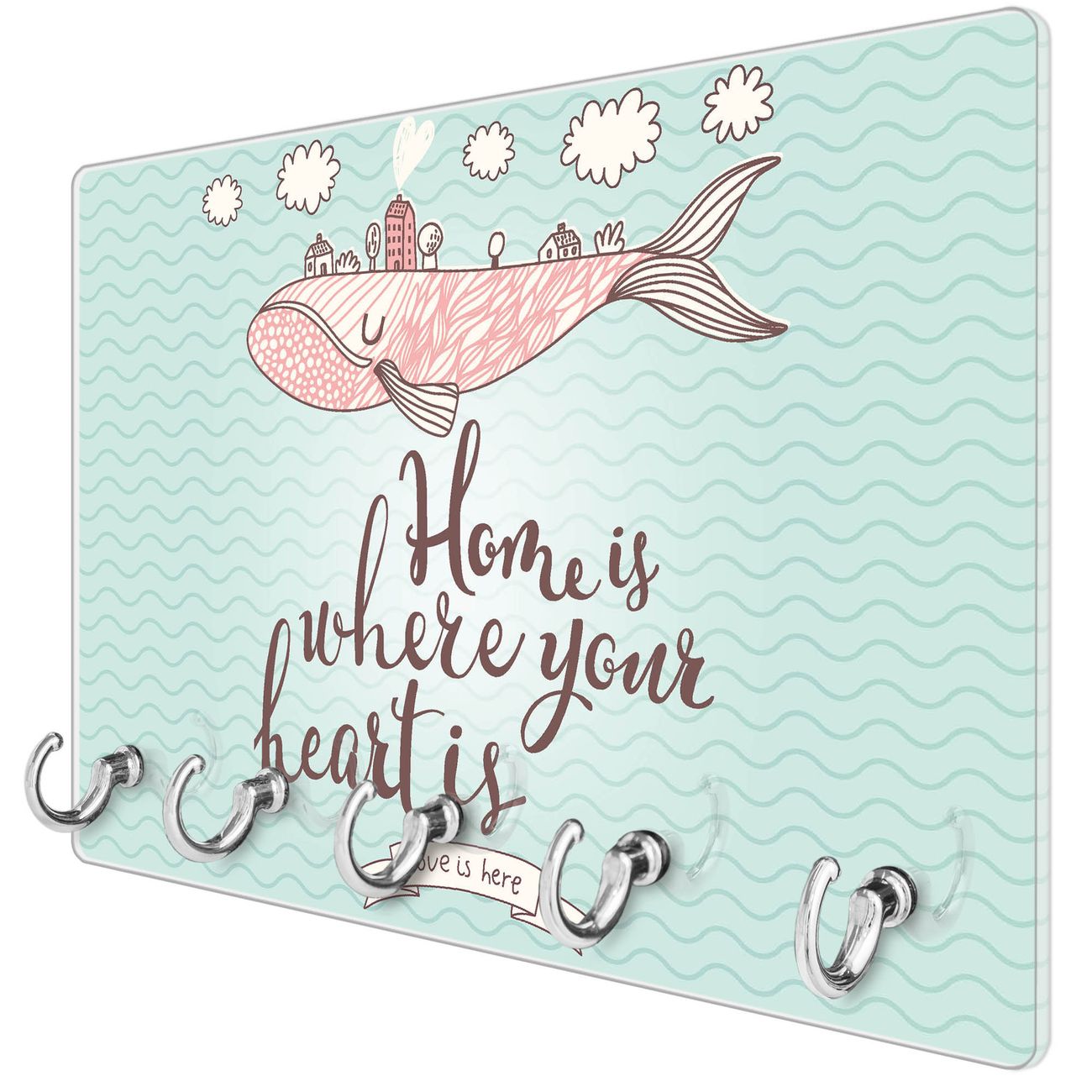 Glas Schlüsselbrett mit 5 Haken Herzensangelegenheit