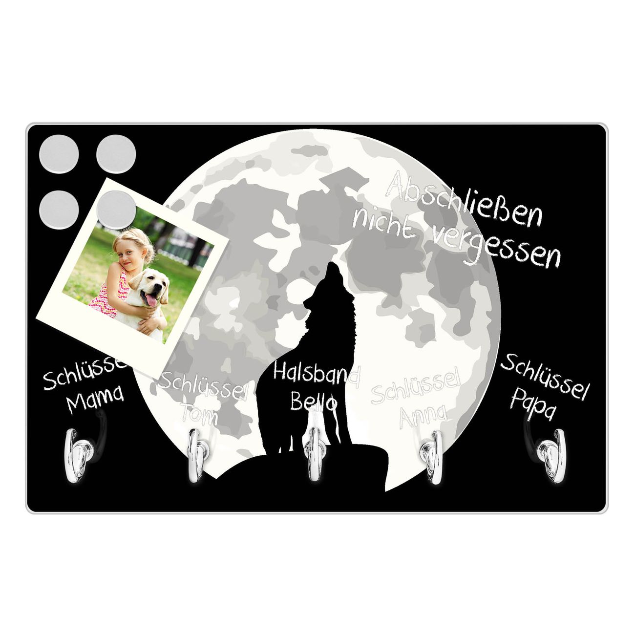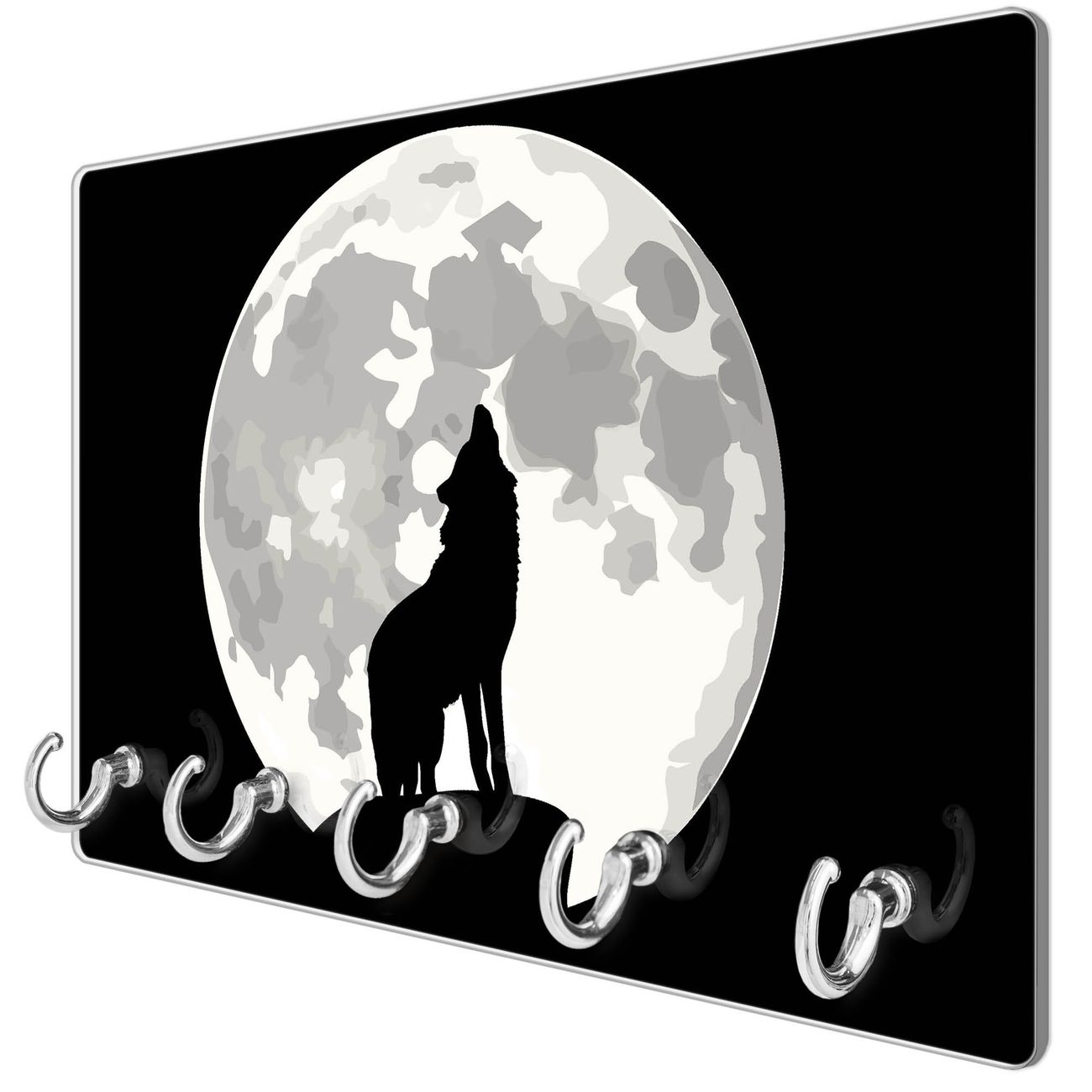Glas Schlüsselbrett mit 5 Haken Heulender Wolf SW