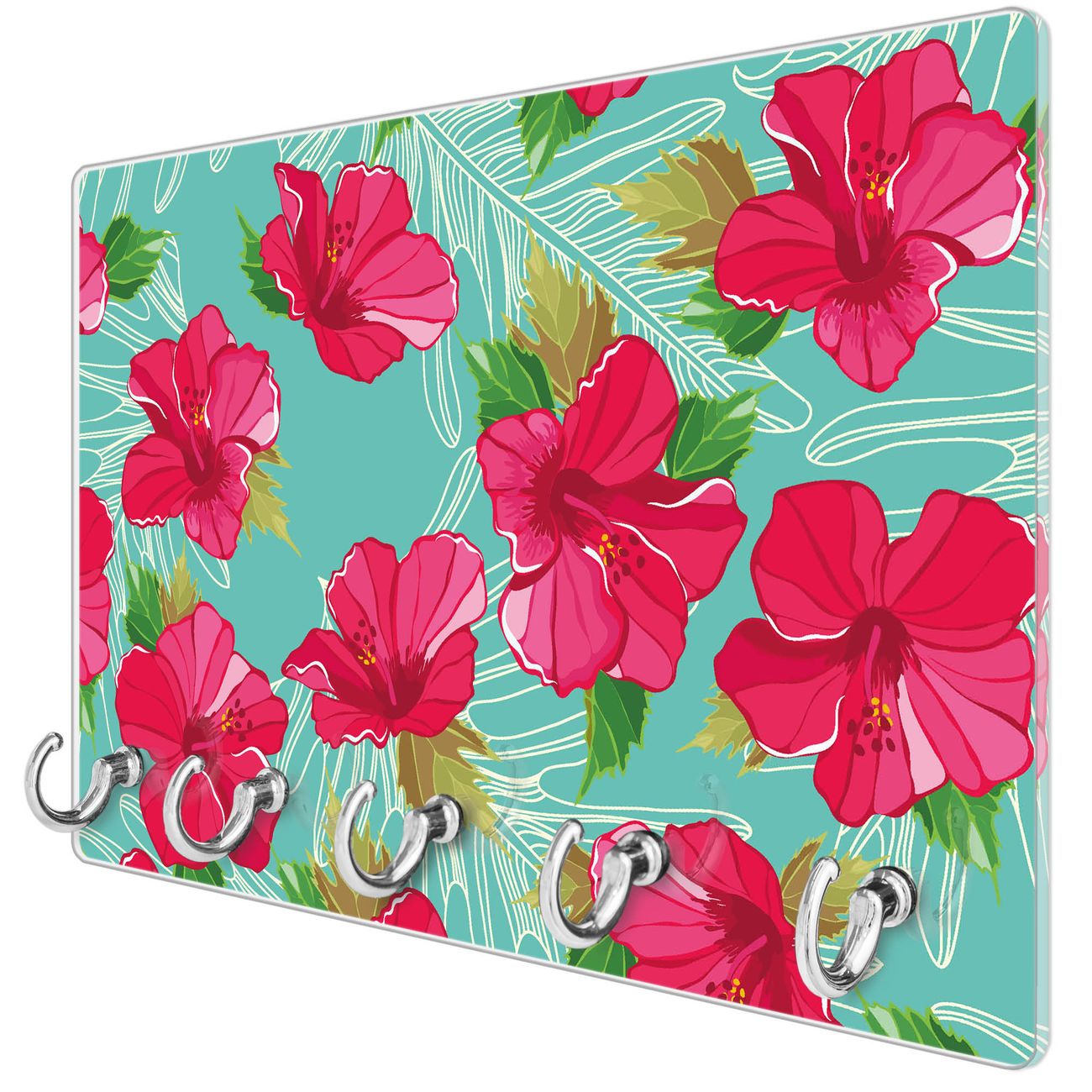 Glas Schlüsselbrett mit 5 Haken Hibiskus