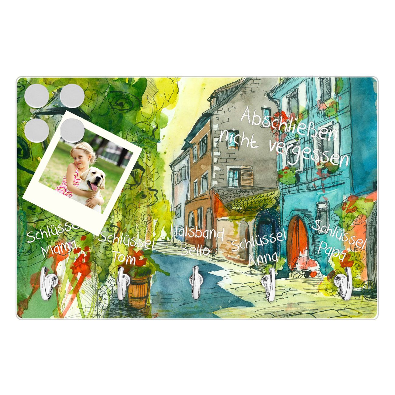Glas Schlüsselbrett mit 5 Haken Historischer Stadtkern