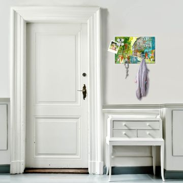 FUNKTION: Mit dem banjado Schlüsselbrett Historischer Stadtkern hat Ihre Suche nach dem Schlüsselbund endlich ein Ende! Auf gesamt 5 Haken finden auch die größten Schlüssel ihren Platz. Durch den farbenfrohen Motivdruck ist das Schlüsselboard ein Blickfang in jeder Wohnung. DESIGN: Die Schlüsselleiste mit Motiv Historischer Stadtkern hat ein sehr ansprechendes und ausgefallenes Design. Das Glasboard besteht aus einer gehärteten Glasscheibe mit dem Motiv Ihrer Wahl. Ihre neue Schlüsselaufbewahrung ist funktionell und ein optisches Highlight. DETAILS: Das Schlüsselbrett ist 30 x 20 x 4,5 CM (BxHxT). Das ganze Board besteht aus gehärtetem Sicherheitsglas, die Haken zur Selbstmontage präsentieren sich in Edelstahl-Optik. Für einen sicheren Halt erfolgt die Aufhängung an 2 vorgefertigten Haltern an der Rückseite. Das Montagematerial fügen wir bei. NUTZEN: Hier findet alles seinen Platz: Schlüsselbunde, Geschirrtücher, Hundeleinen oder Kinderjacken. Das Glas kann mit Kreidestiften bzw. Whiteboard-Marker beschrieben werden, mit extrastarken Neodym-Magneten können Sie auch Notizen anheften. BANJADO: Wir sind ein kleines Team aus dem Herzen von Sachsen und fertigen Ihre neue Schlüsselaufbewahrung von Hand an. Sie erhalten Handarbeit und keine preiswerte Importware. Wir hoffen, dass Ihnen unsere Idee zusagt, herzlichst das banjado Team.