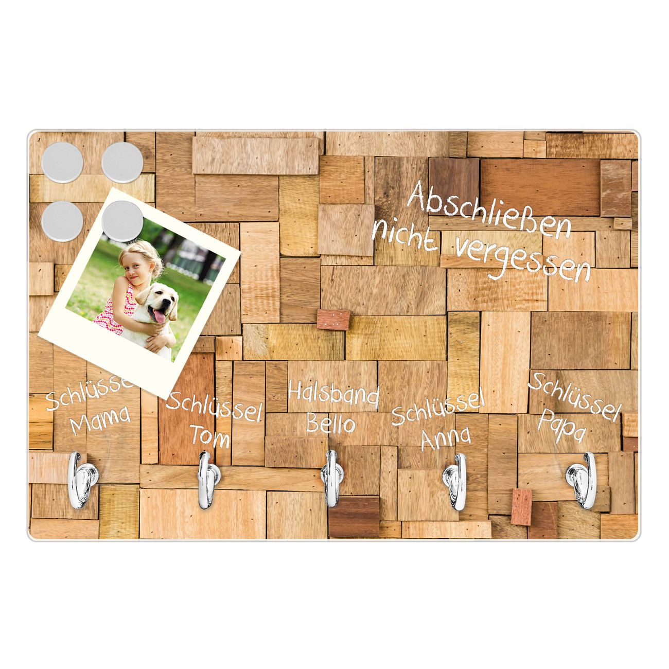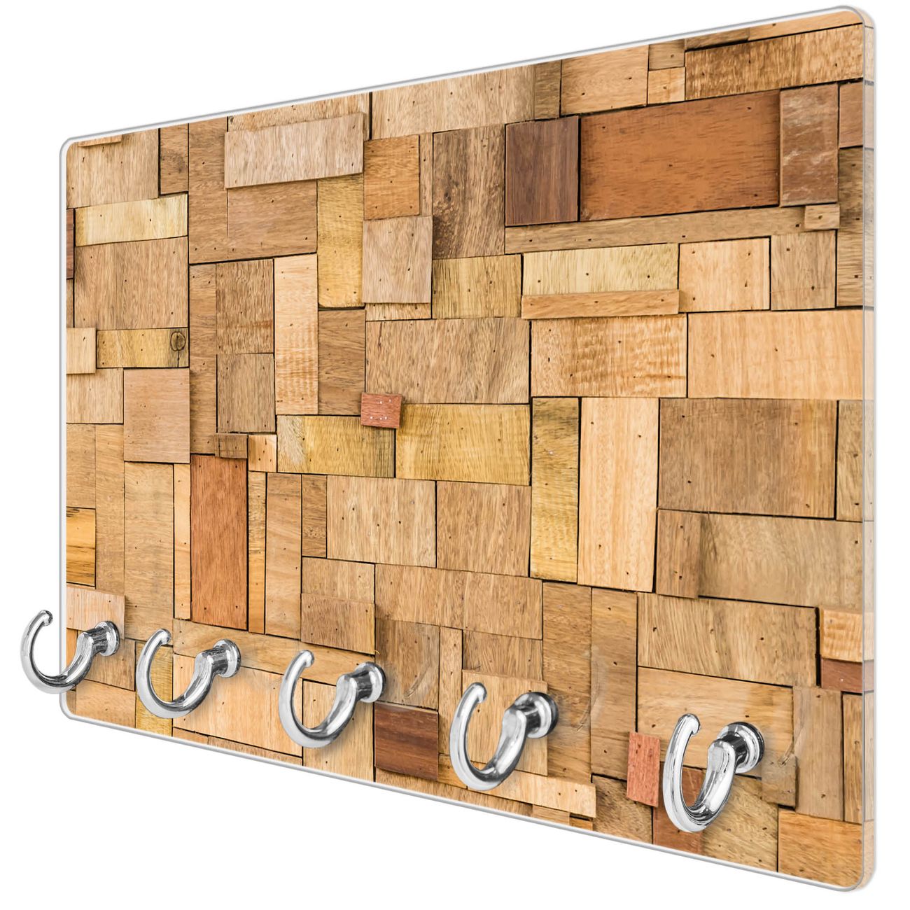 Glas Schlüsselbrett mit 5 Haken Hölzernes Flickwerk