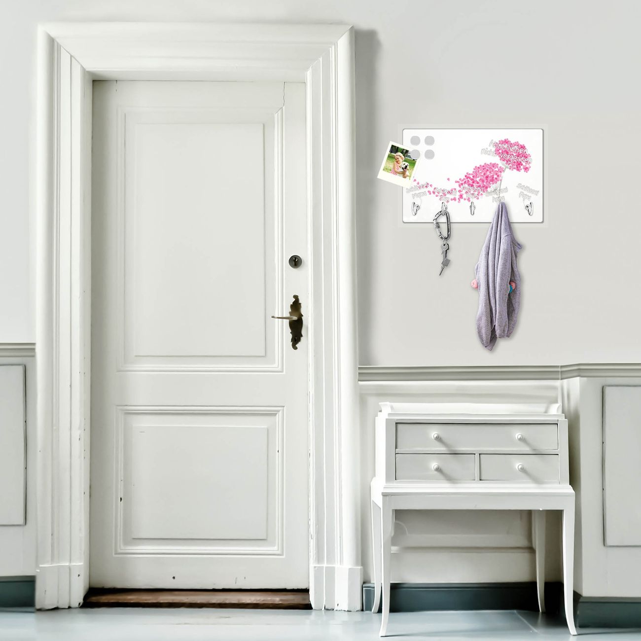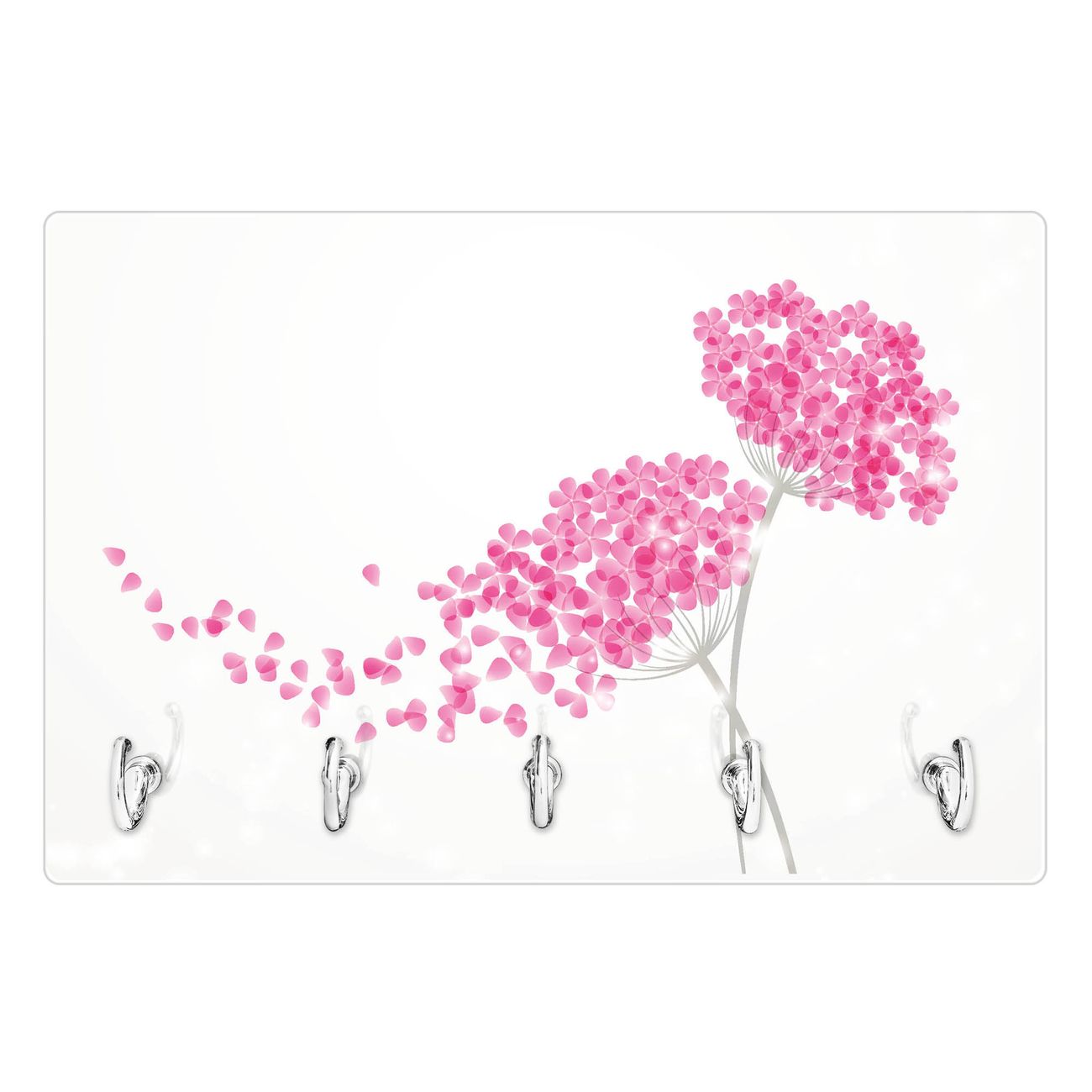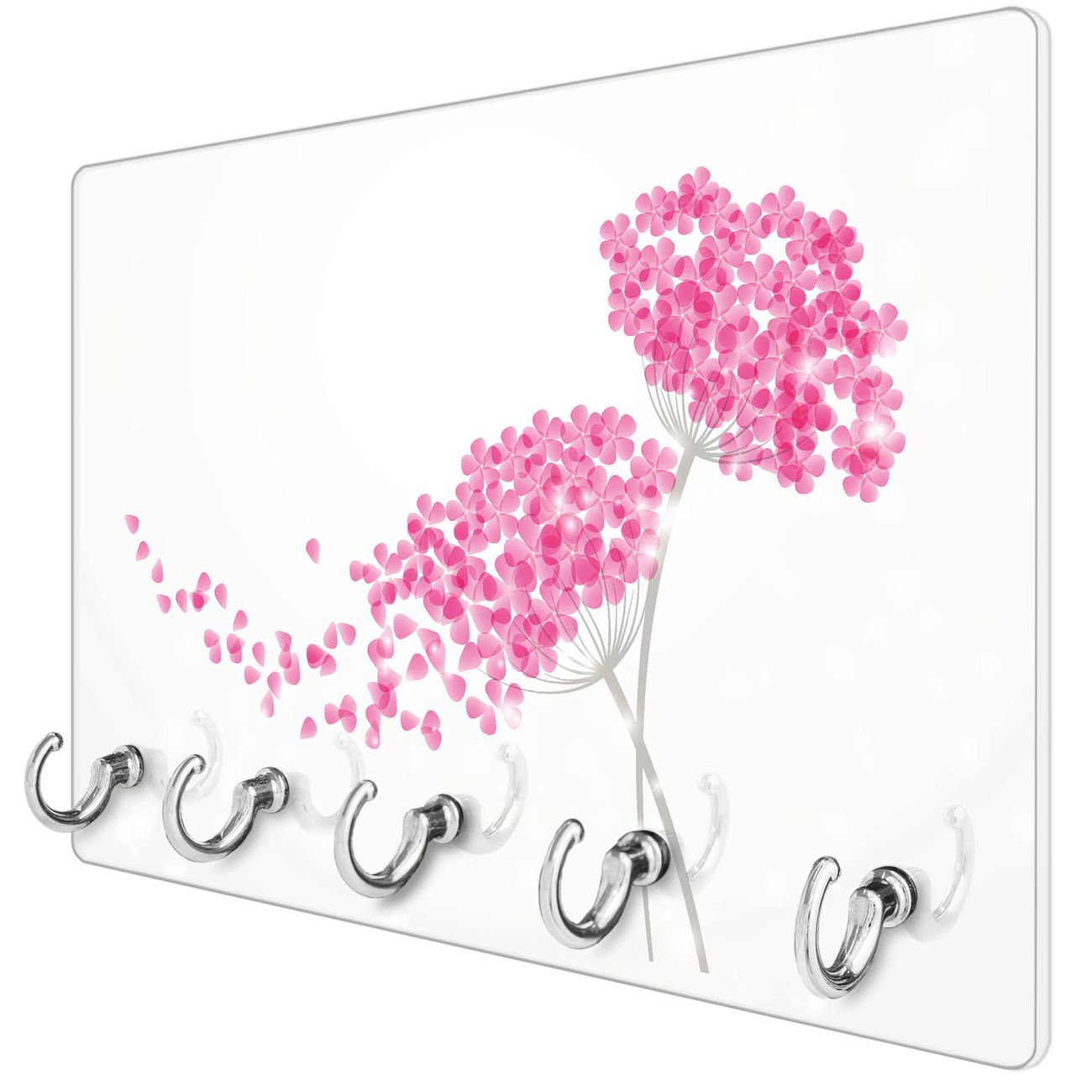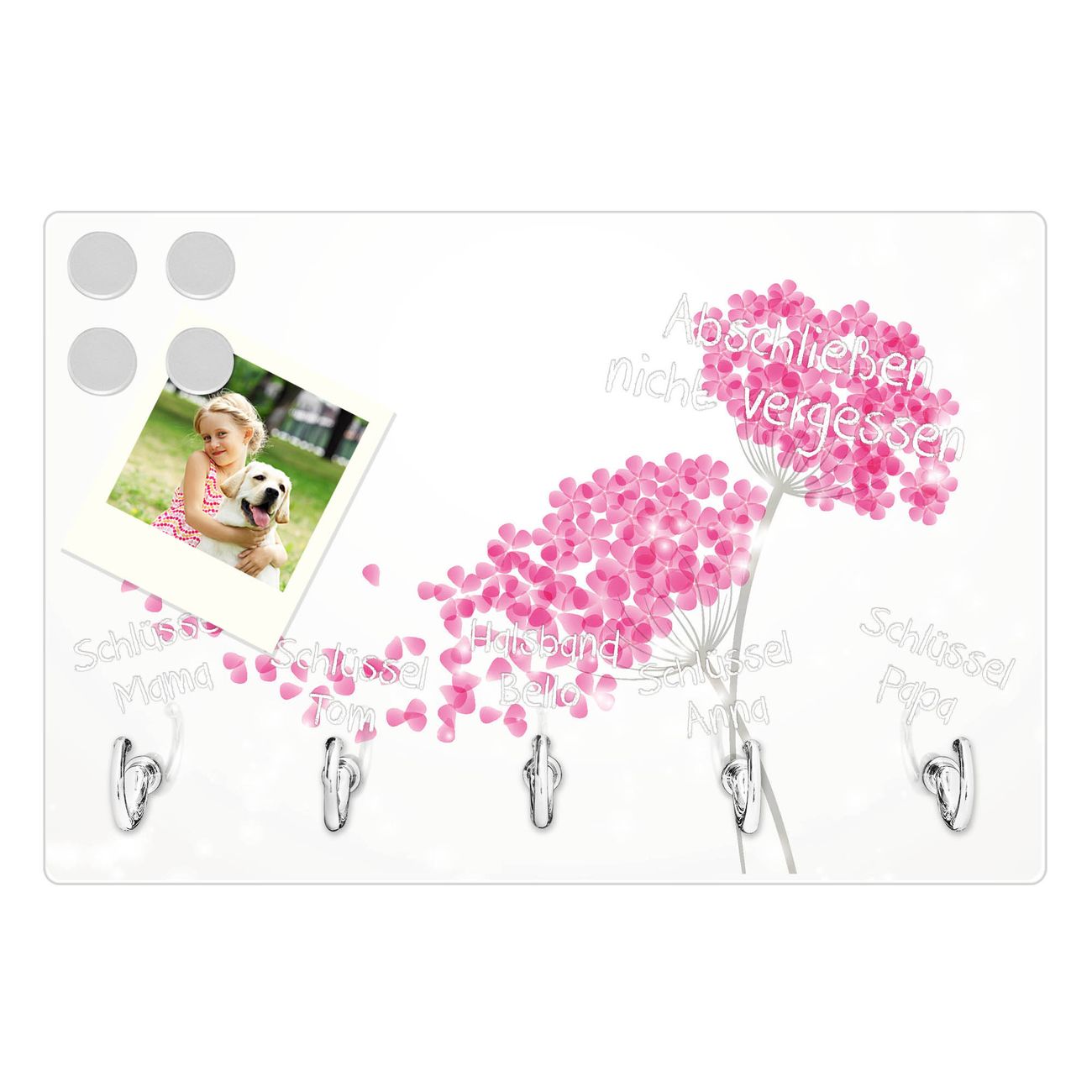 Glas Schlüsselbrett mit 5 Haken Holunder Pink