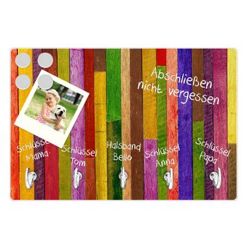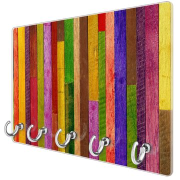 Glas Schlüsselbrett mit 5 Haken Holz Collage Bunt
