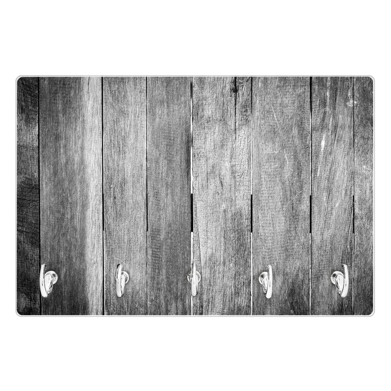 Glas Schlüsselbrett mit 5 Haken Holz Monochrom
