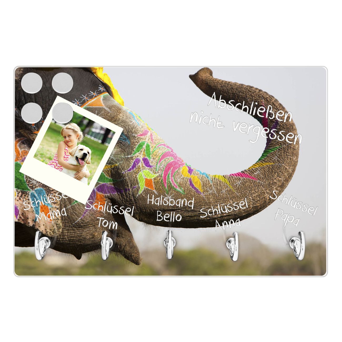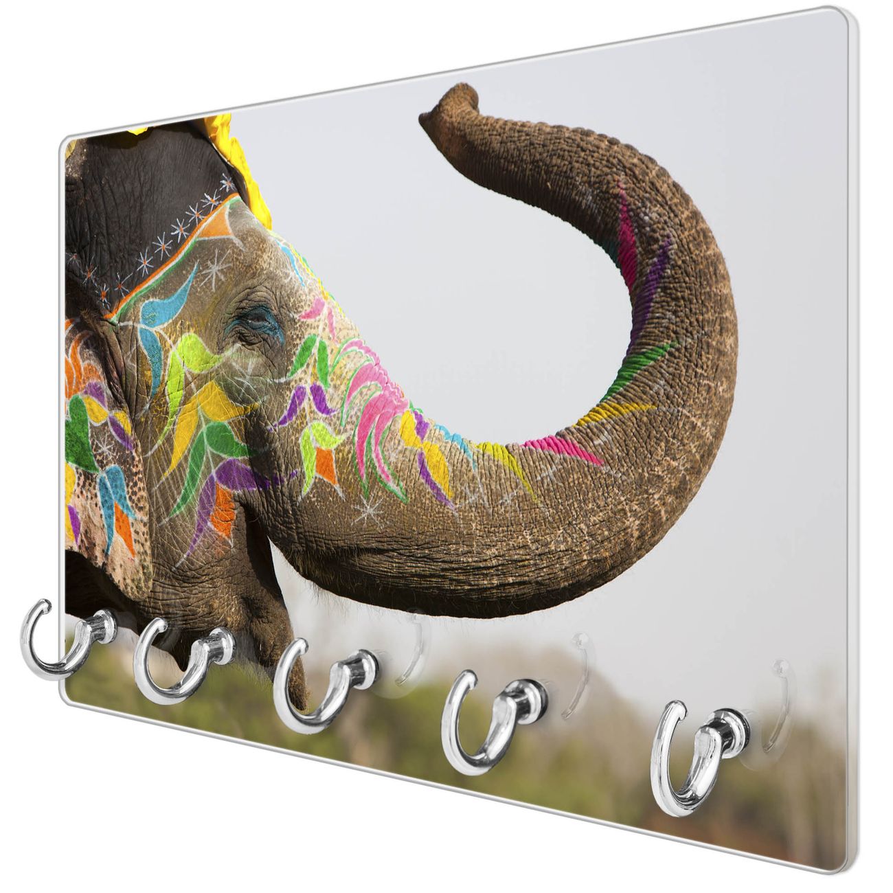 Glas Schlüsselbrett mit 5 Haken Indischer Elephant