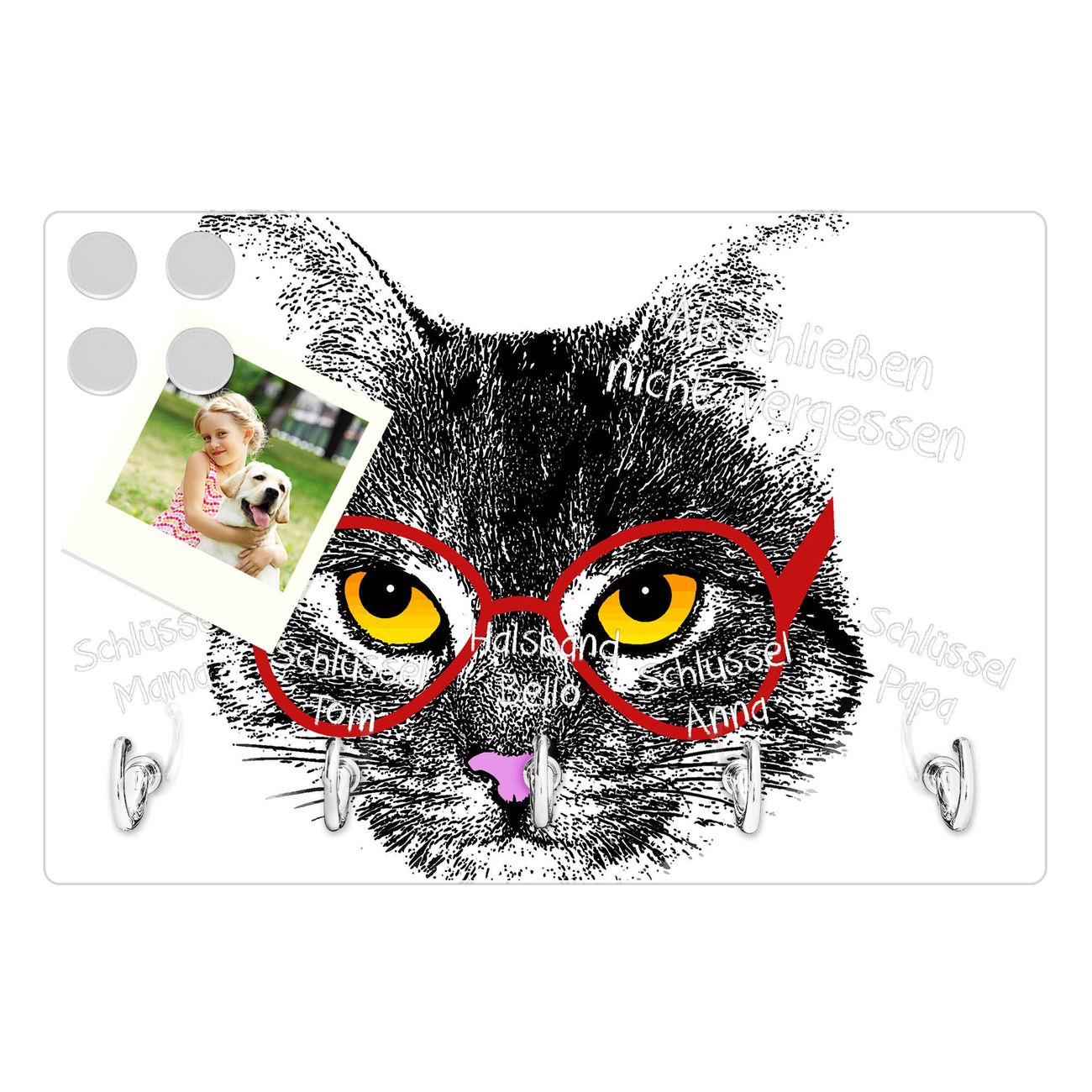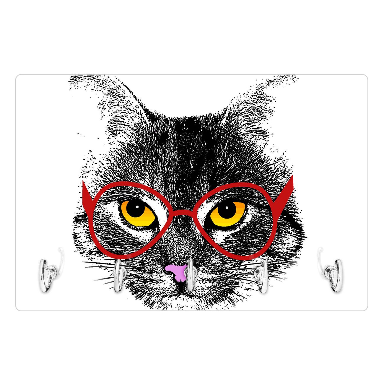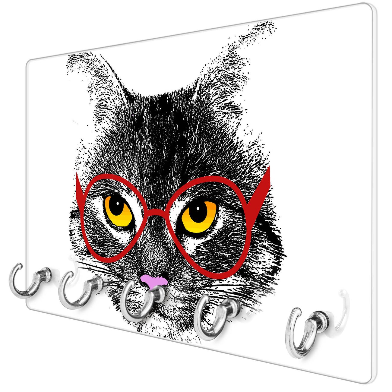 Glas Schlüsselbrett mit 5 Haken Intellicat