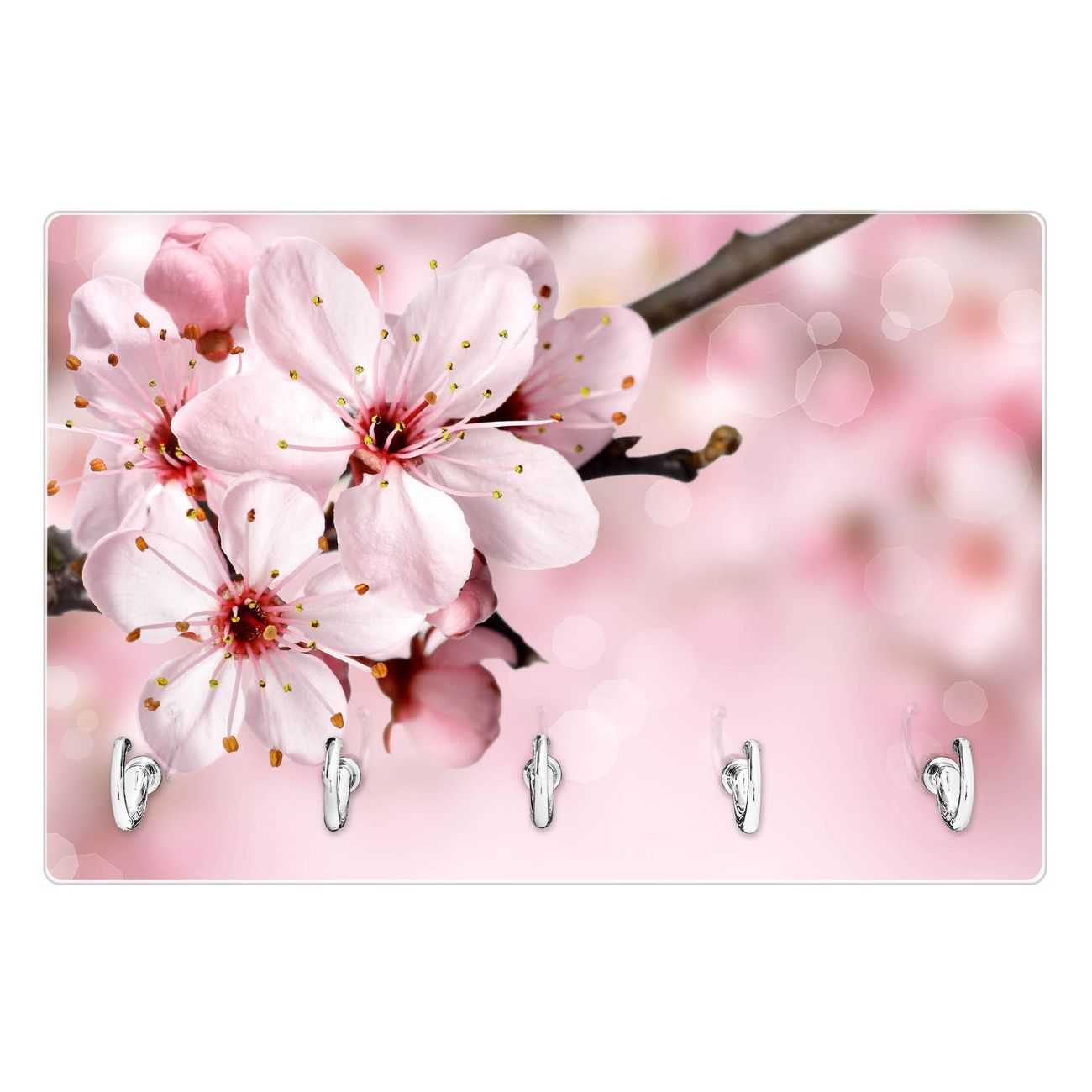 Glas Schlüsselbrett mit 5 Haken Japanische Kirsche
