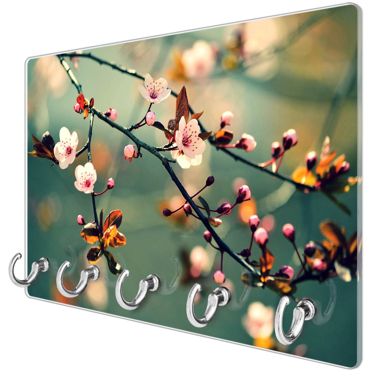 Glas Schlüsselbrett mit 5 Haken Japankirsche