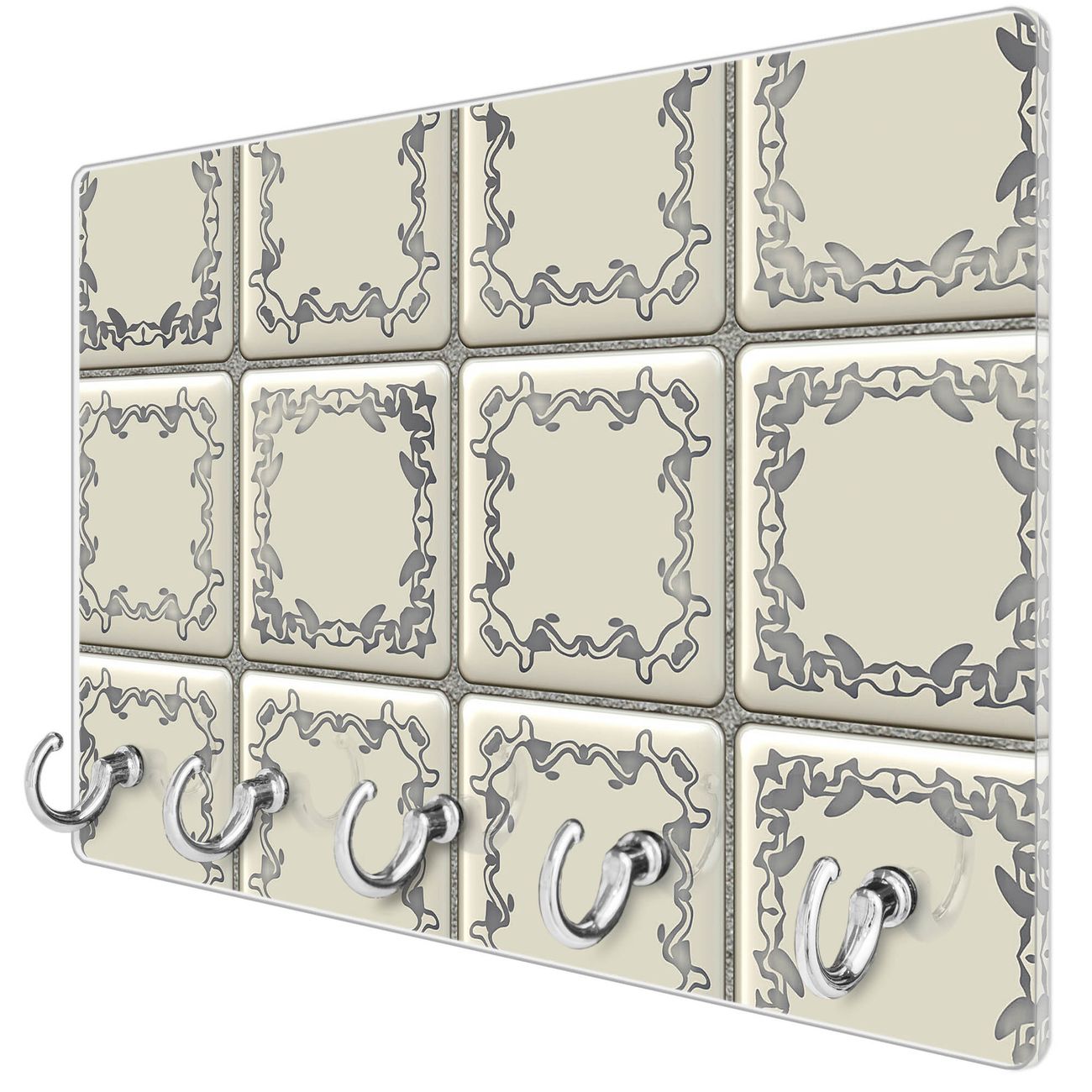 Glas Schlüsselbrett mit 5 Haken Kacheln