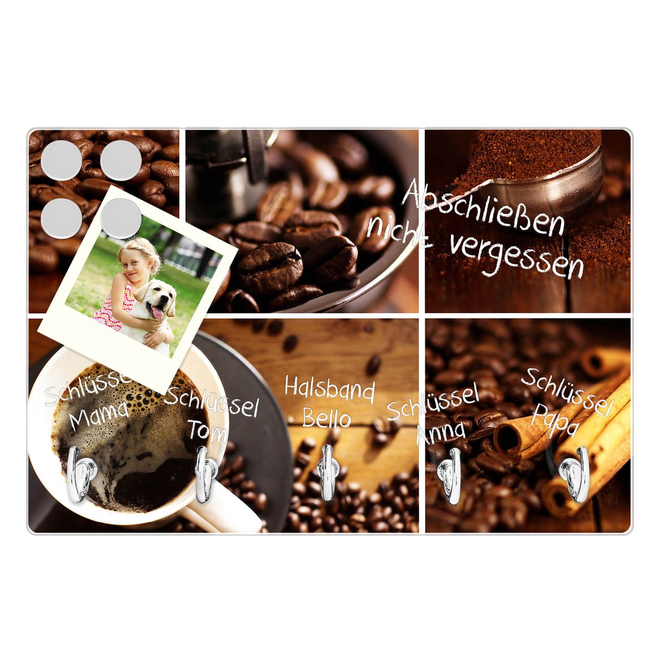 Glas Schlüsselbrett mit 5 Haken Kaffee&Schokolade
