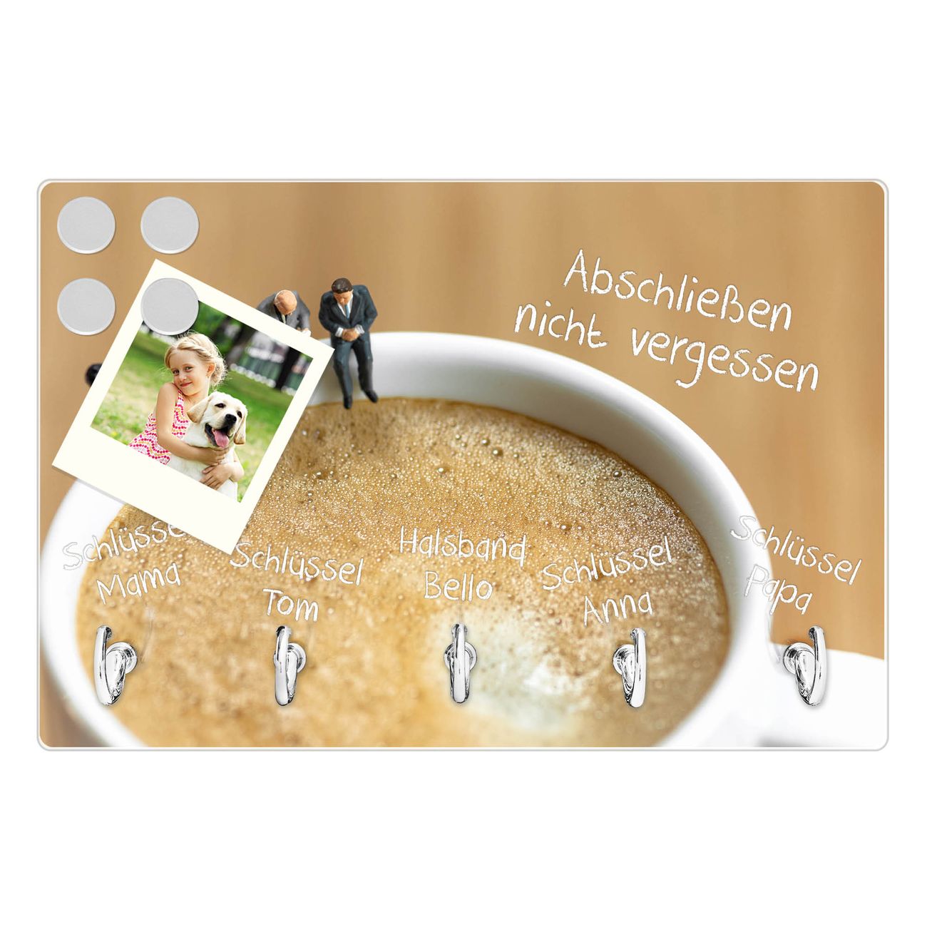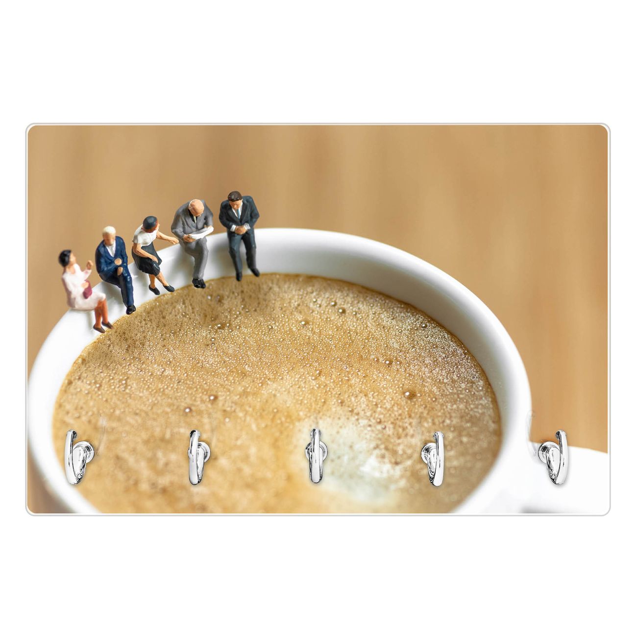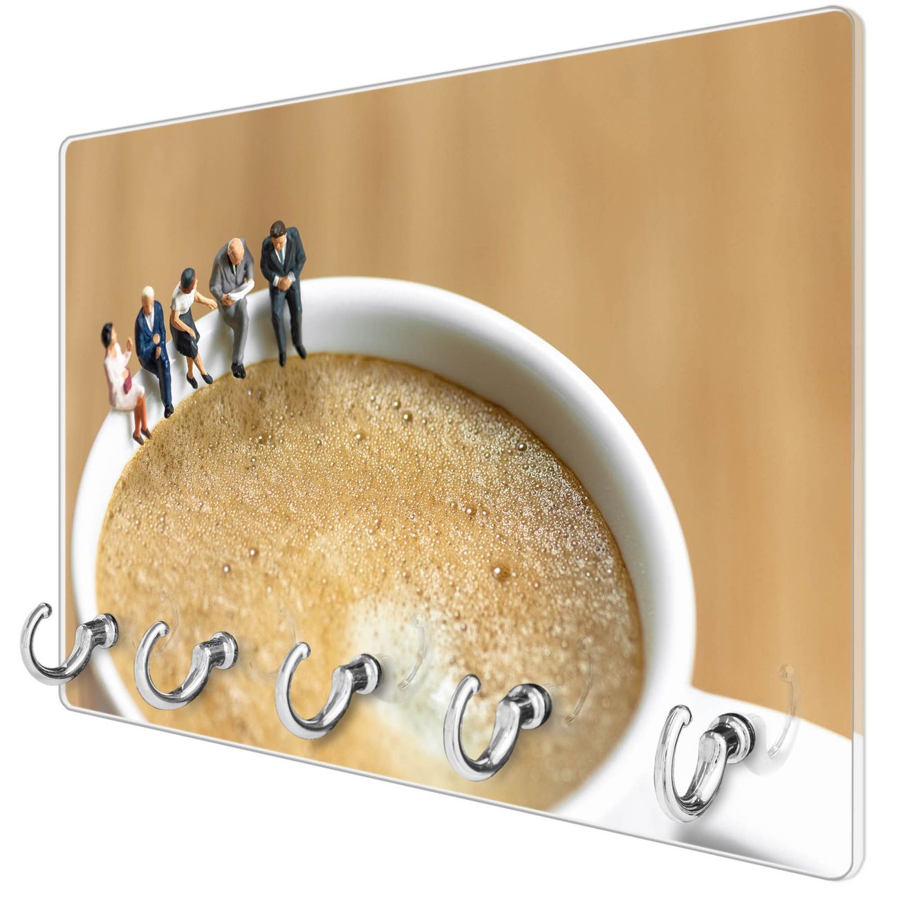 Glas Schlüsselbrett mit 5 Haken Kaffeepause
