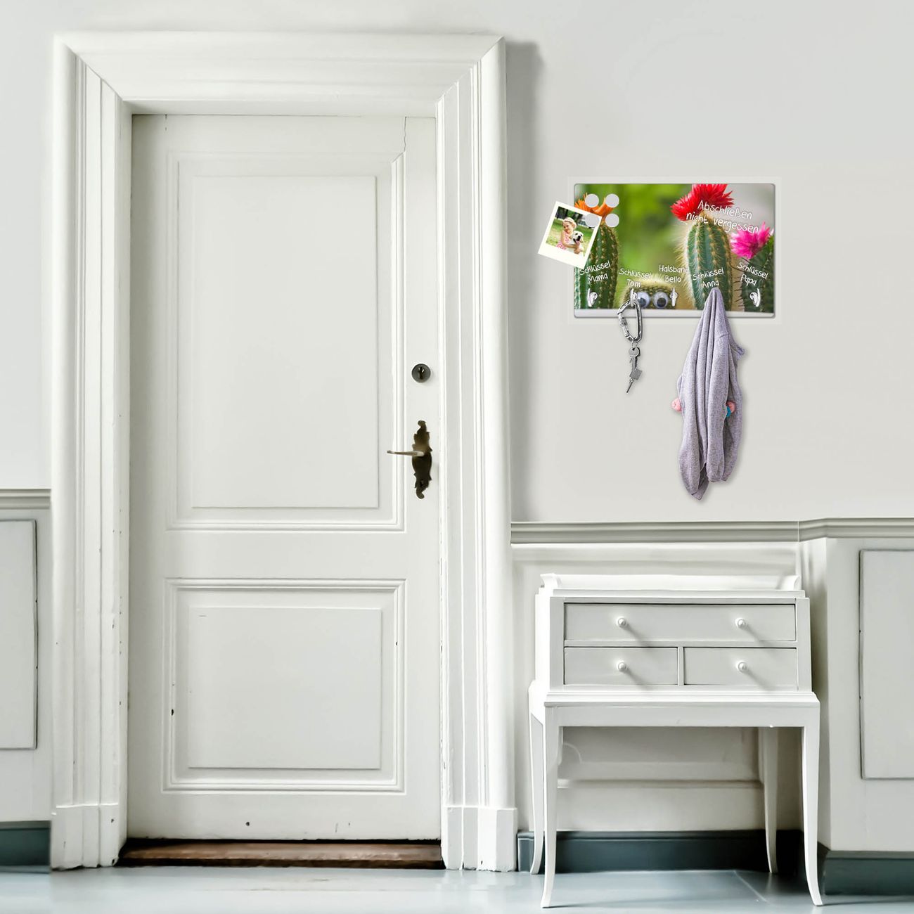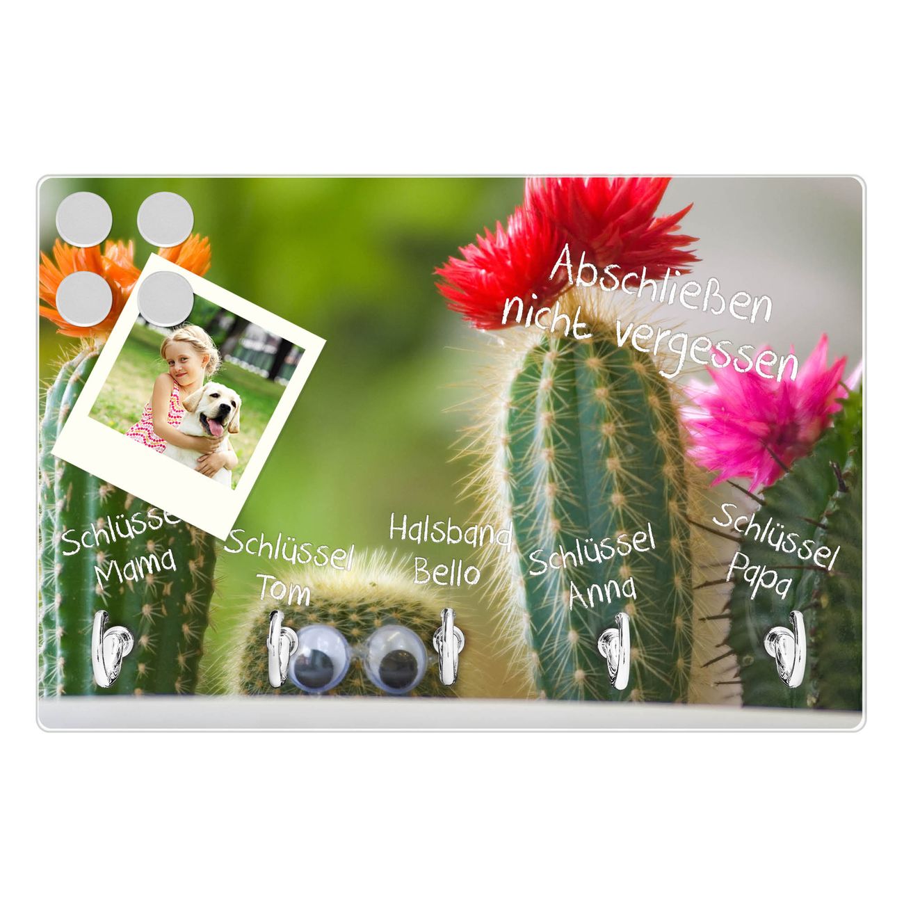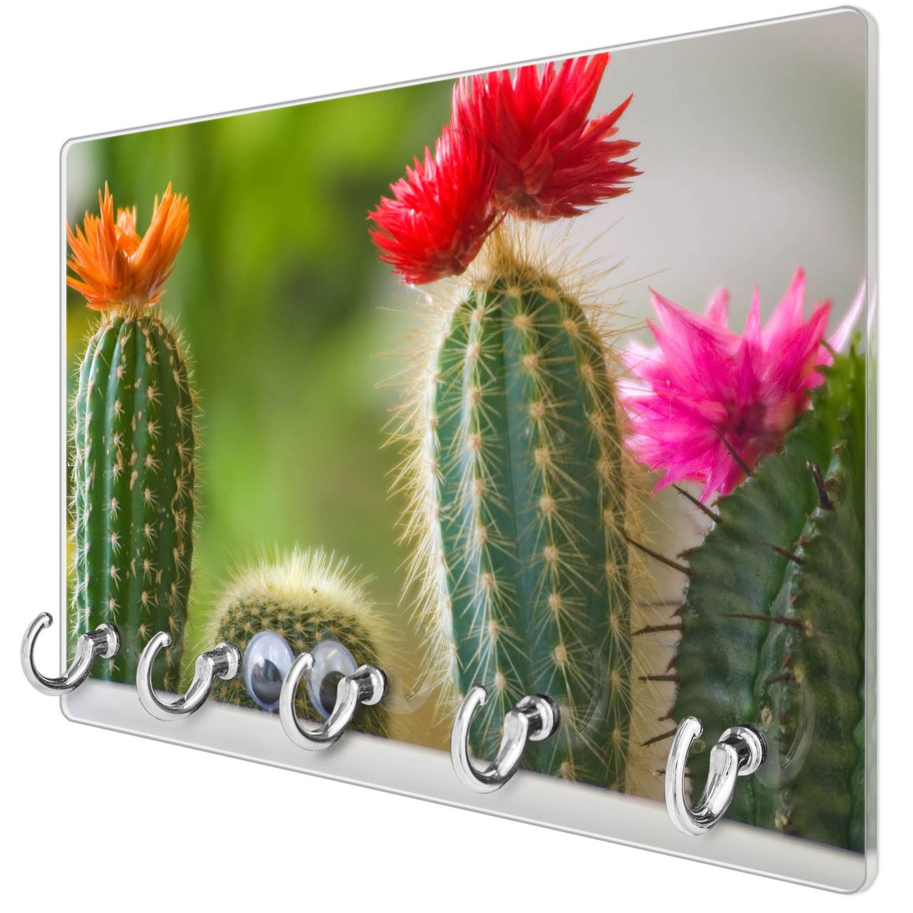 Glas Schlüsselbrett mit 5 Haken Kakteen