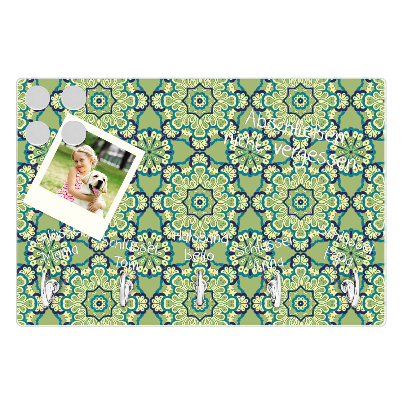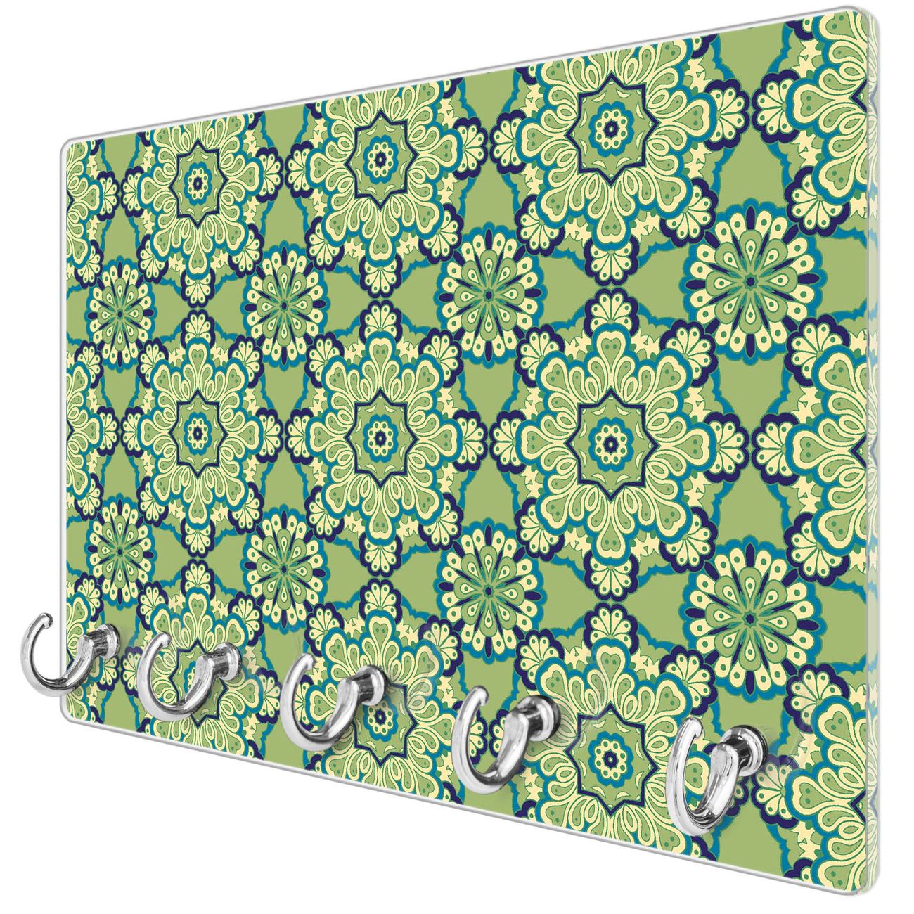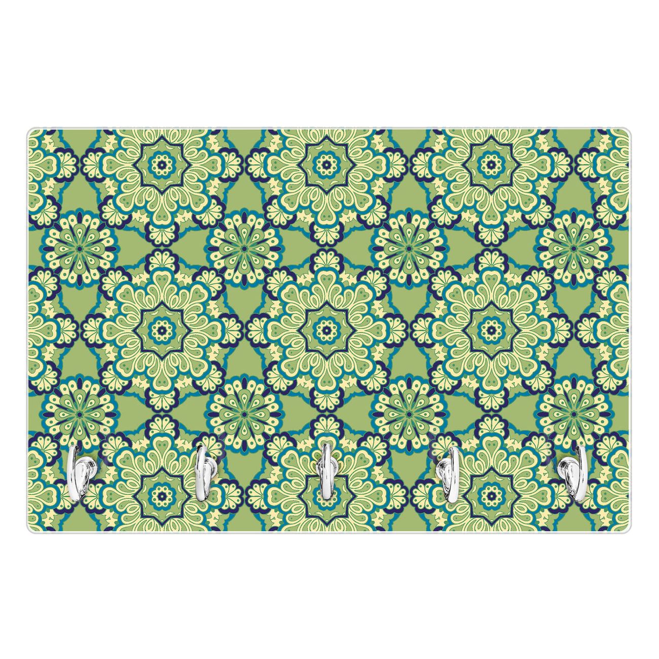 Glas Schlüsselbrett mit 5 Haken Kaleidoscop Grün