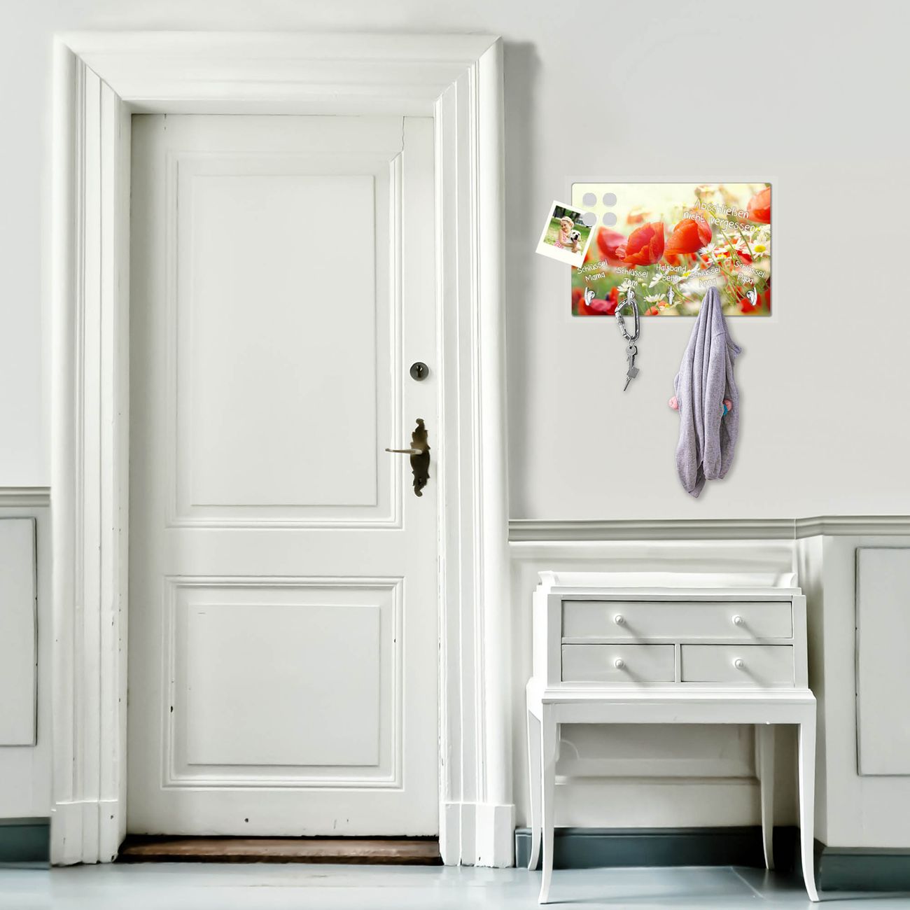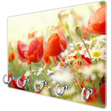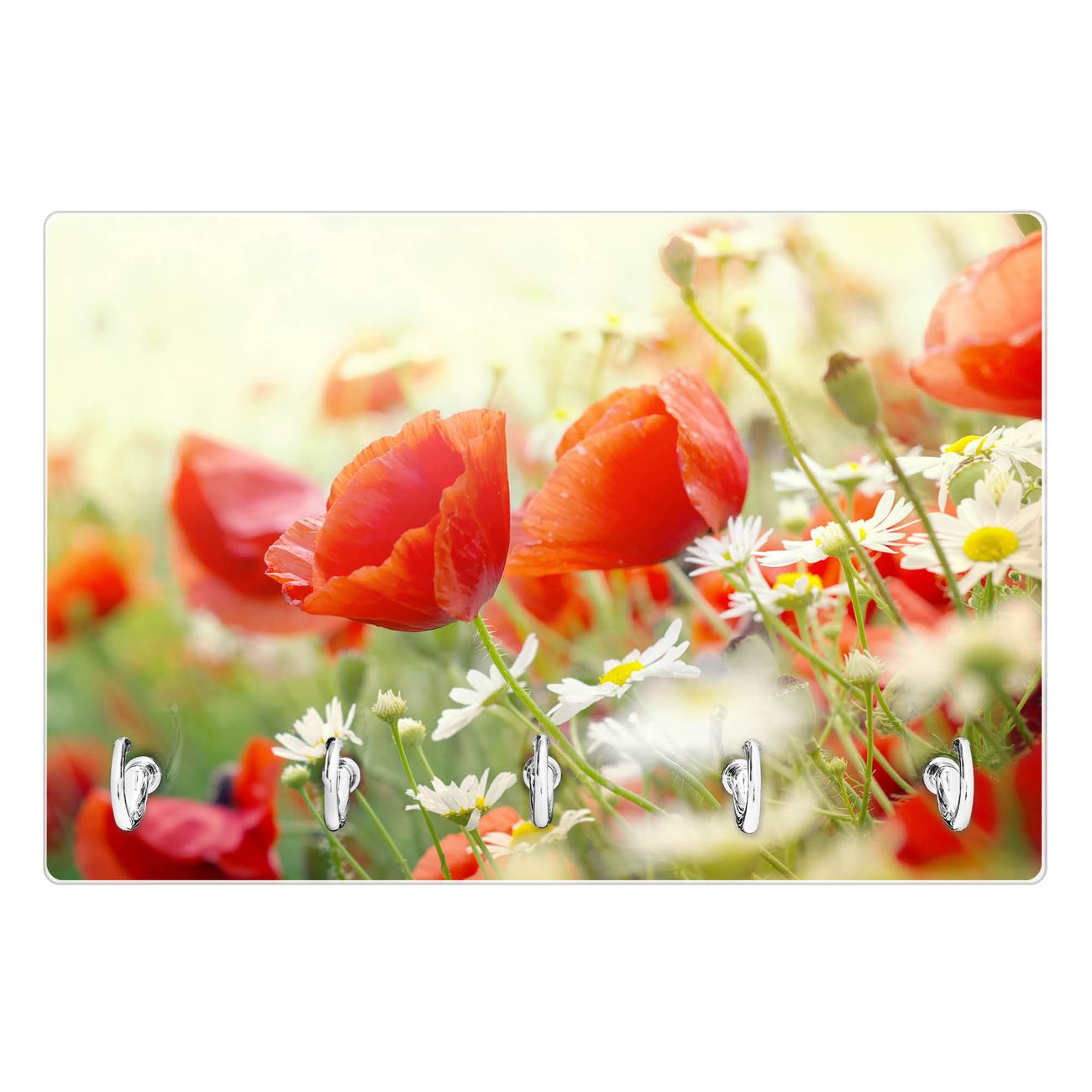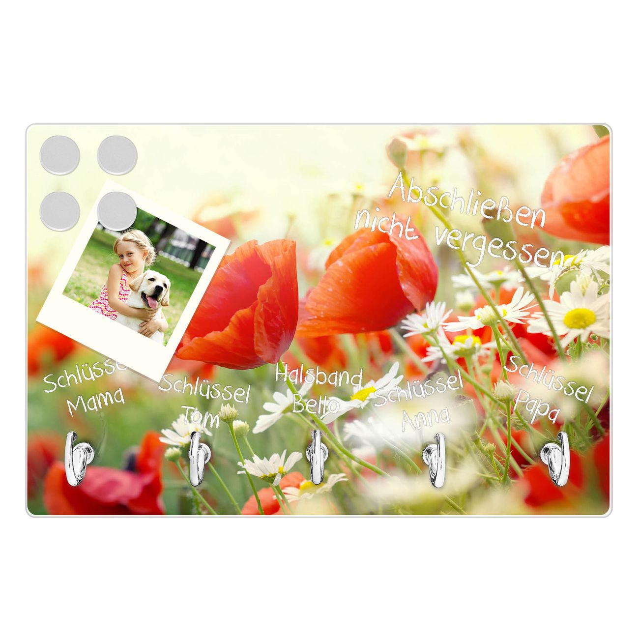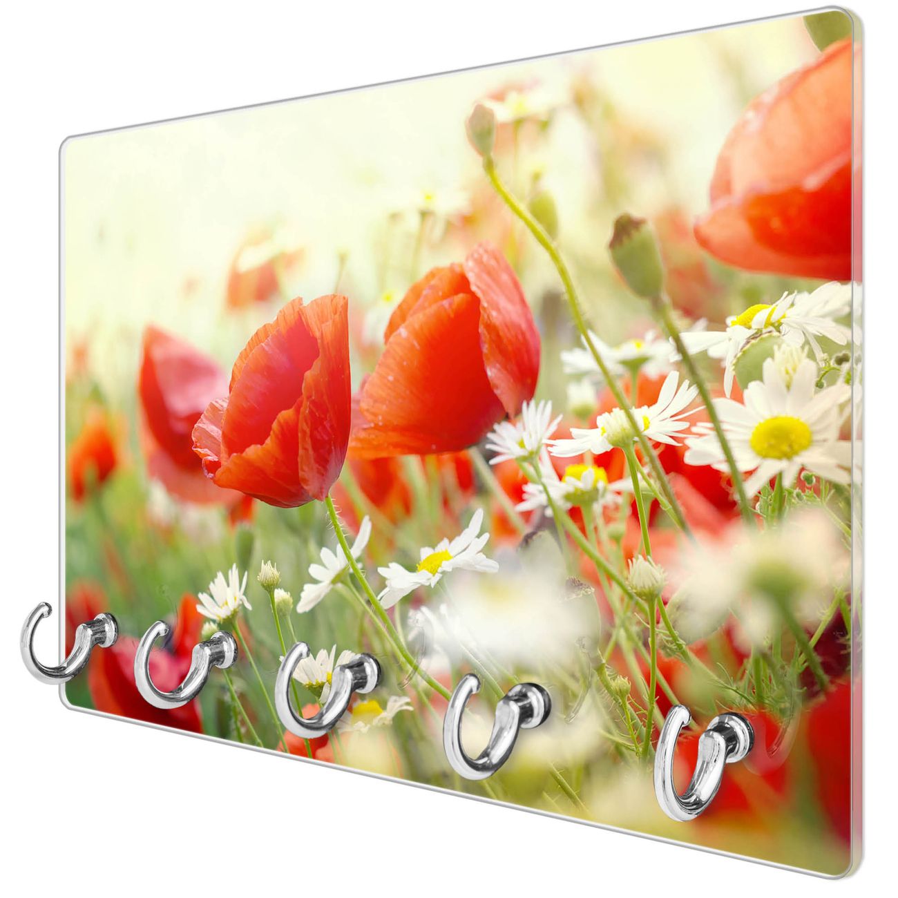 Glas Schlüsselbrett mit 5 Haken Kamille Und Mohn