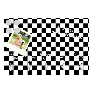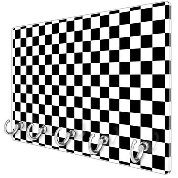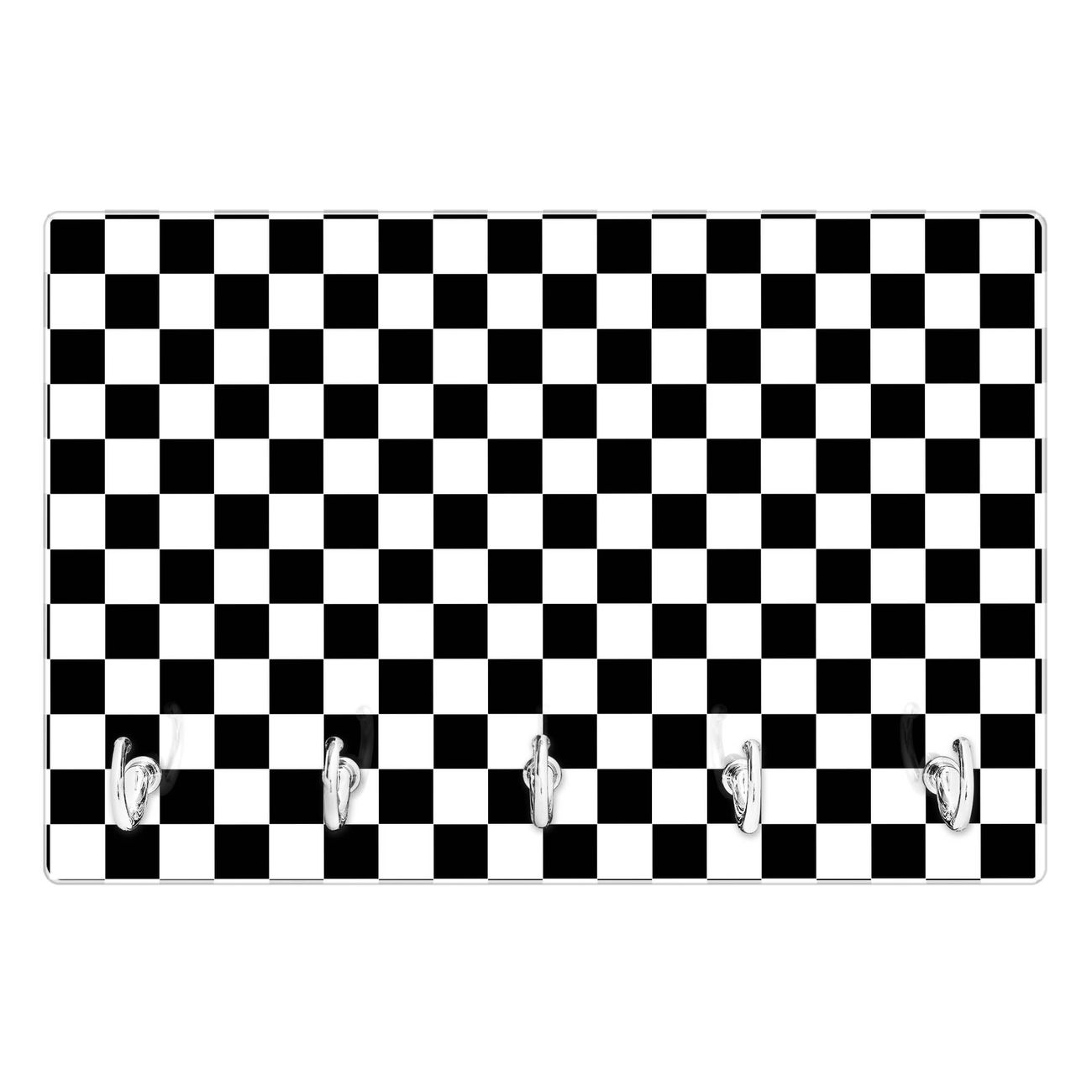 Glas Schlüsselbrett mit 5 Haken Karo Schwarz
