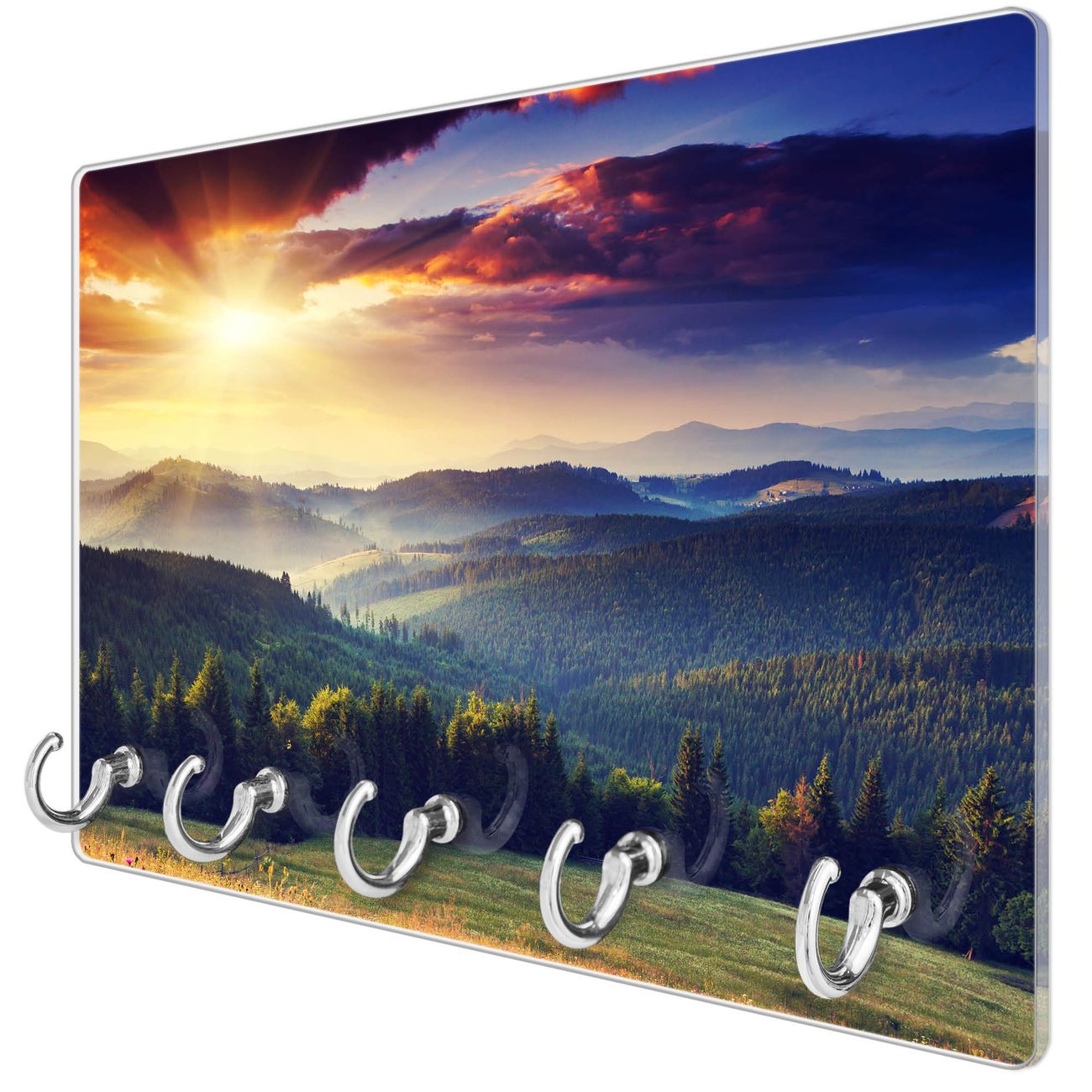 Glas Schlüsselbrett mit 5 Haken Karpaten Sonnenuntergang