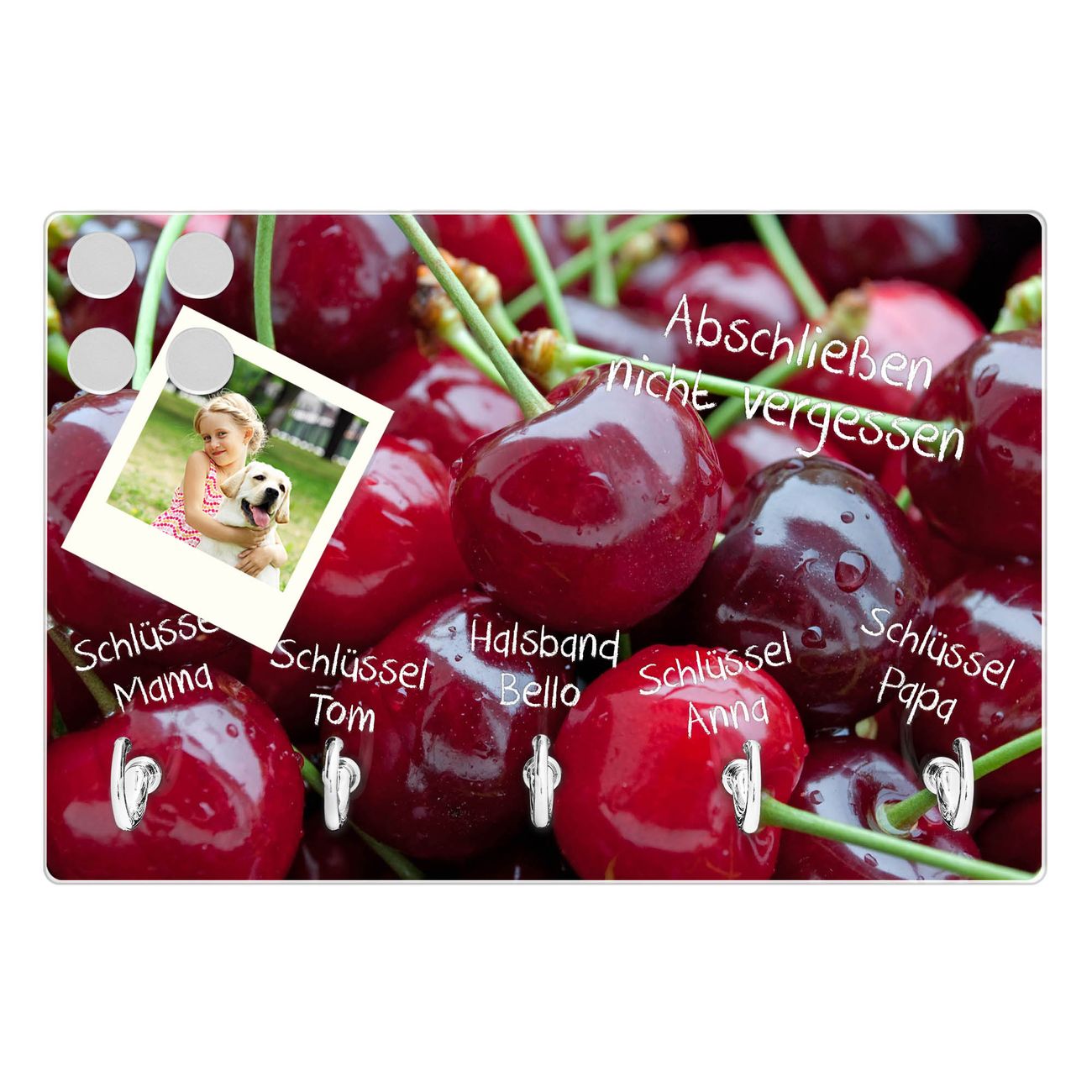 Glas Schlüsselbrett mit 5 Haken Kirschen