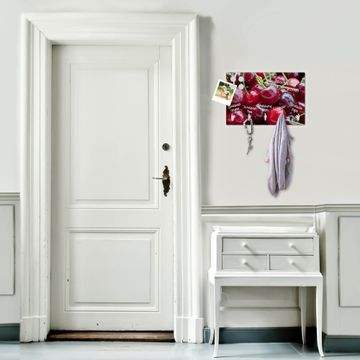 FUNKTION: Mit dem banjado Schlüsselbrett Kirschen hat Ihre Suche nach dem Schlüsselbund endlich ein Ende! Auf gesamt 5 Haken finden auch die größten Schlüssel ihren Platz. Durch den farbenfrohen Motivdruck ist das Schlüsselboard ein Blickfang in jeder Wohnung. DESIGN: Die Schlüsselleiste mit Motiv Kirschen hat ein sehr ansprechendes und ausgefallenes Design. Das Glasboard besteht aus einer gehärteten Glasscheibe mit dem Motiv Ihrer Wahl. Ihre neue Schlüsselaufbewahrung ist funktionell und ein optisches Highlight. DETAILS: Das Schlüsselbrett ist 30 x 20 x 4,5 CM (BxHxT). Das ganze Board besteht aus gehärtetem Sicherheitsglas, die Haken zur Selbstmontage präsentieren sich in Edelstahl-Optik. Für einen sicheren Halt erfolgt die Aufhängung an 2 vorgefertigten Haltern an der Rückseite. Das Montagematerial fügen wir bei. NUTZEN: Hier findet alles seinen Platz: Schlüsselbunde, Geschirrtücher, Hundeleinen oder Kinderjacken. Das Glas kann mit Kreidestiften bzw. Whiteboard-Marker beschrieben werden, mit extrastarken Neodym-Magneten können Sie auch Notizen anheften. BANJADO: Wir sind ein kleines Team aus dem Herzen von Sachsen und fertigen Ihre neue Schlüsselaufbewahrung von Hand an. Sie erhalten Handarbeit und keine preiswerte Importware. Wir hoffen, dass Ihnen unsere Idee zusagt, herzlichst das banjado Team.