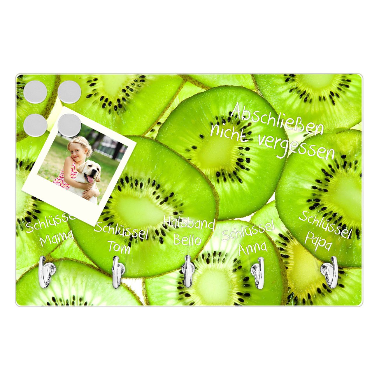 Glas Schlüsselbrett mit 5 Haken Kiwi