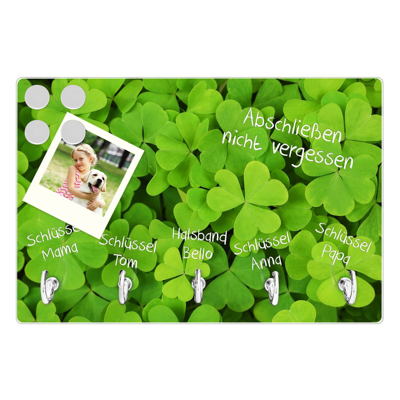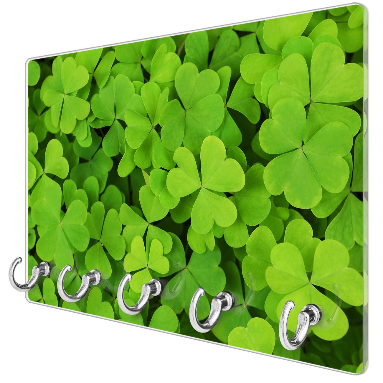 Glas Schlüsselbrett mit 5 Haken Klee