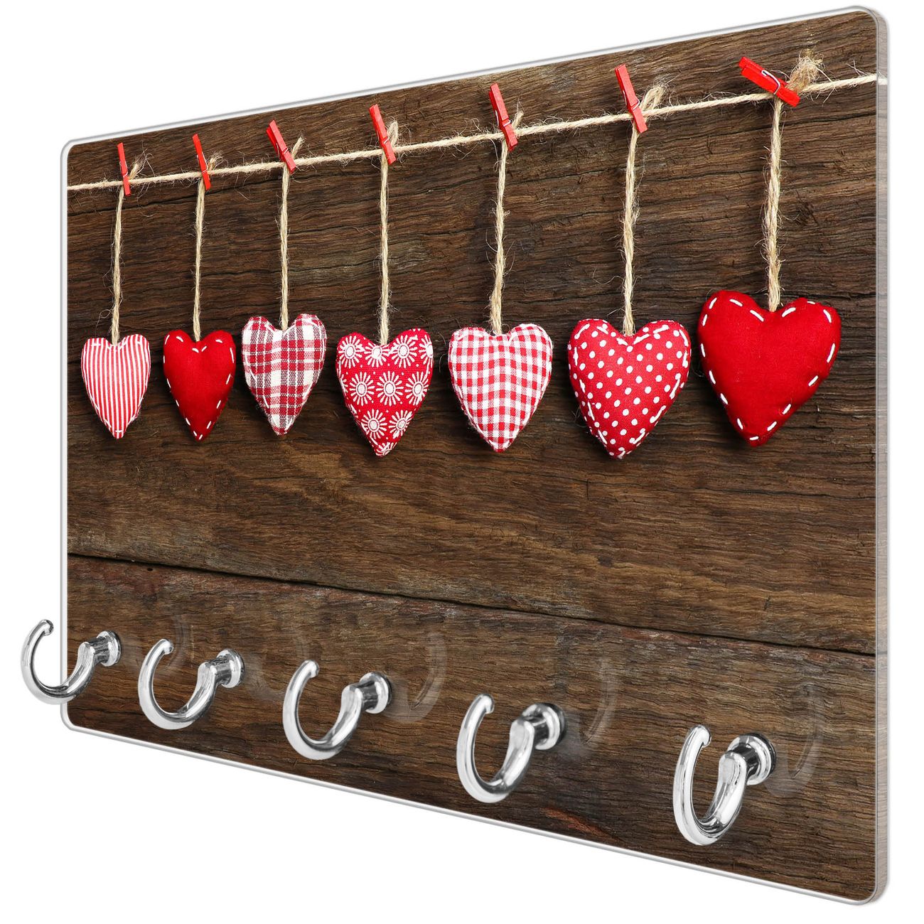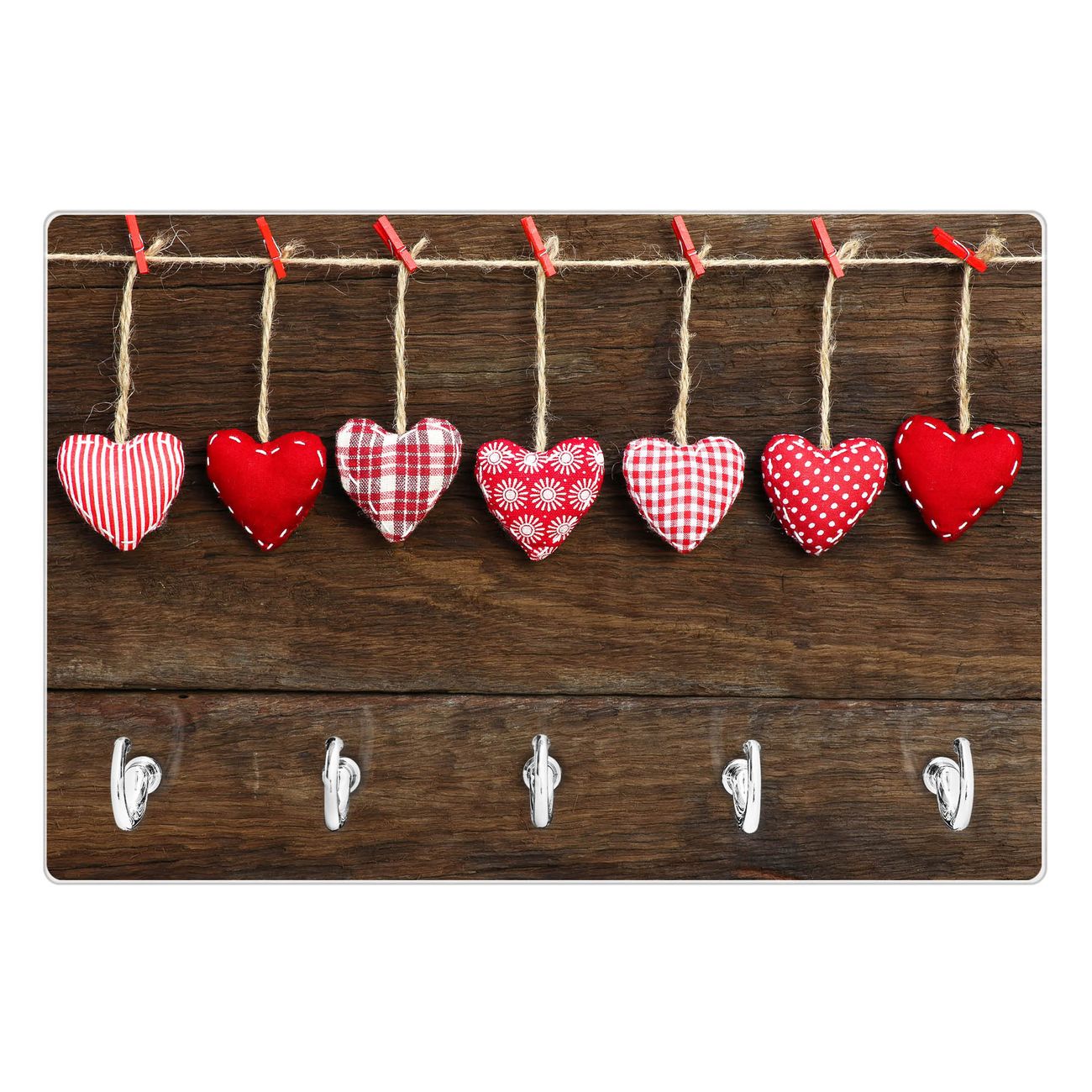 Glas Schlüsselbrett mit 5 Haken Kleine Herzen