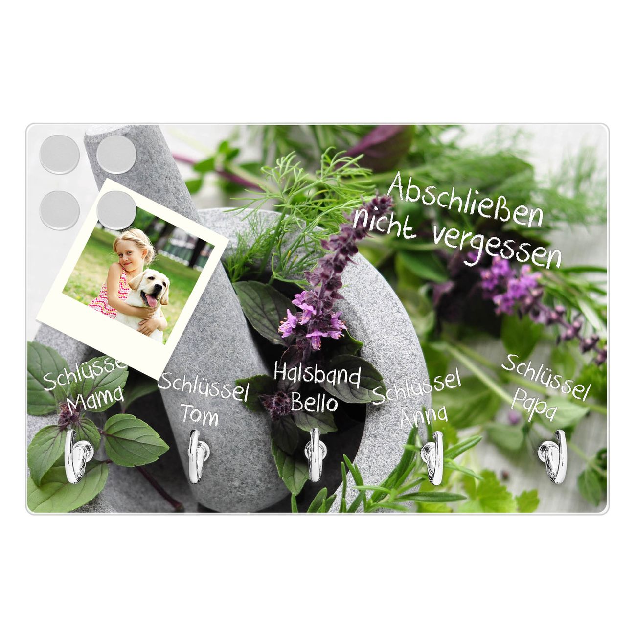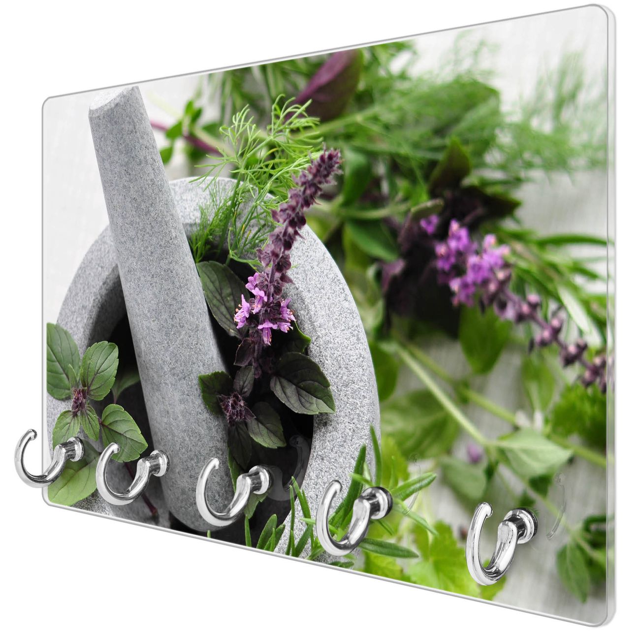 Glas Schlüsselbrett mit 5 Haken Kräuter