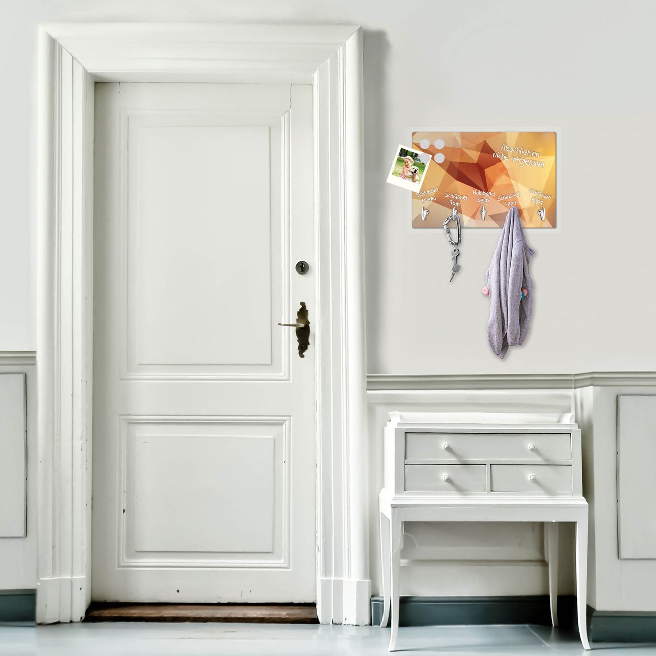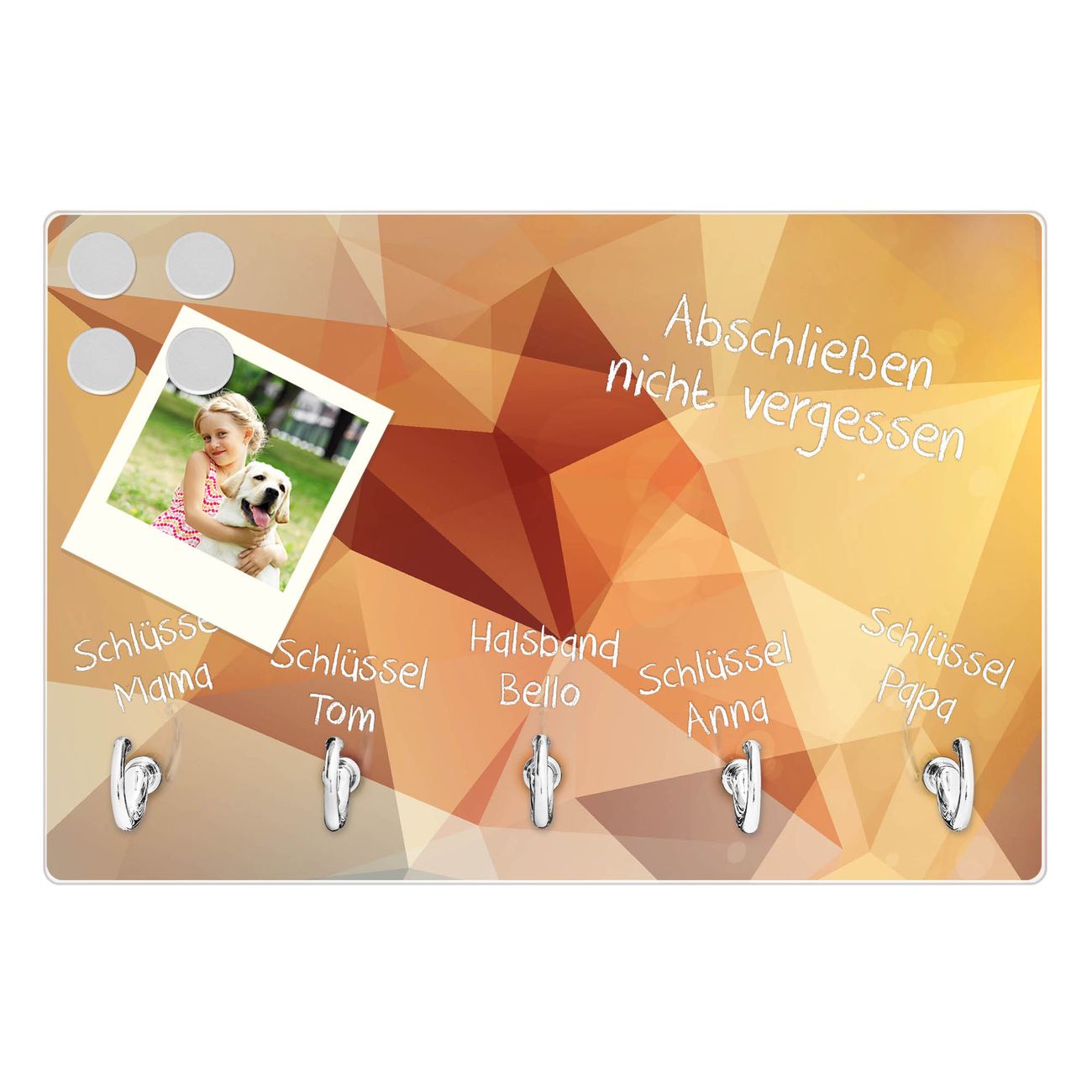 FUNKTION: Mit dem banjado Schlüsselbrett Kristall hat Ihre Suche nach dem Schlüsselbund endlich ein Ende! Auf gesamt 5 Haken finden auch die größten Schlüssel ihren Platz. Durch den farbenfrohen Motivdruck ist das Schlüsselboard ein Blickfang in jeder Wohnung. DESIGN: Die Schlüsselleiste mit Motiv Kristall hat ein sehr ansprechendes und ausgefallenes Design. Das Glasboard besteht aus einer gehärteten Glasscheibe mit dem Motiv Ihrer Wahl. Ihre neue Schlüsselaufbewahrung ist funktionell und ein optisches Highlight. DETAILS: Das Schlüsselbrett ist 30 x 20 x 4,5 CM (BxHxT). Das ganze Board besteht aus gehärtetem Sicherheitsglas, die Haken zur Selbstmontage präsentieren sich in Edelstahl-Optik. Für einen sicheren Halt erfolgt die Aufhängung an 2 vorgefertigten Haltern an der Rückseite. Das Montagematerial fügen wir bei. NUTZEN: Hier findet alles seinen Platz: Schlüsselbunde, Geschirrtücher, Hundeleinen oder Kinderjacken. Das Glas kann mit Kreidestiften bzw. Whiteboard-Marker beschrieben werden, mit extrastarken Neodym-Magneten können Sie auch Notizen anheften. BANJADO: Wir sind ein kleines Team aus dem Herzen von Sachsen und fertigen Ihre neue Schlüsselaufbewahrung von Hand an. Sie erhalten Handarbeit und keine preiswerte Importware. Wir hoffen, dass Ihnen unsere Idee zusagt, herzlichst das banjado Team.
