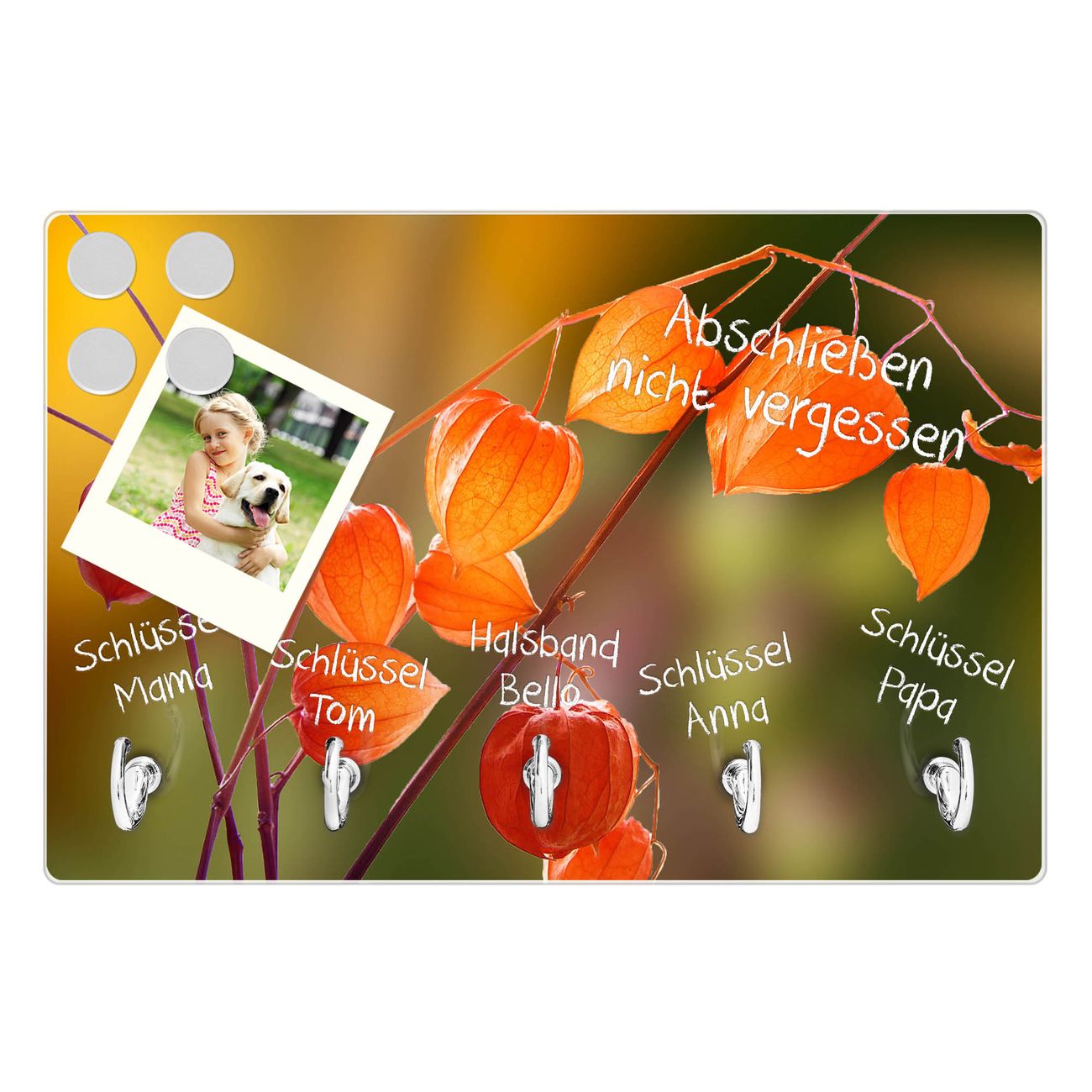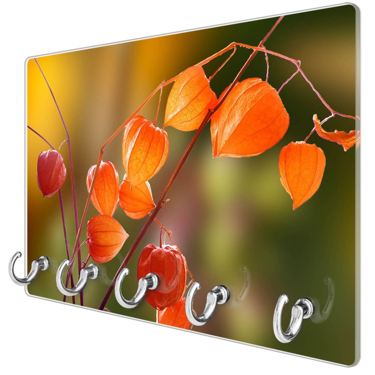 Glas Schlüsselbrett mit 5 Haken Lampionblume