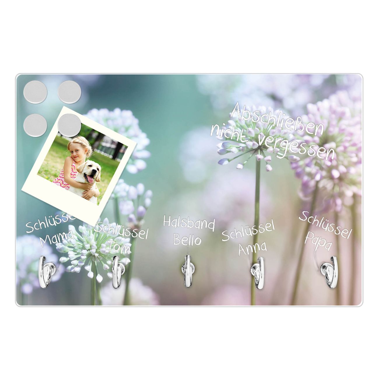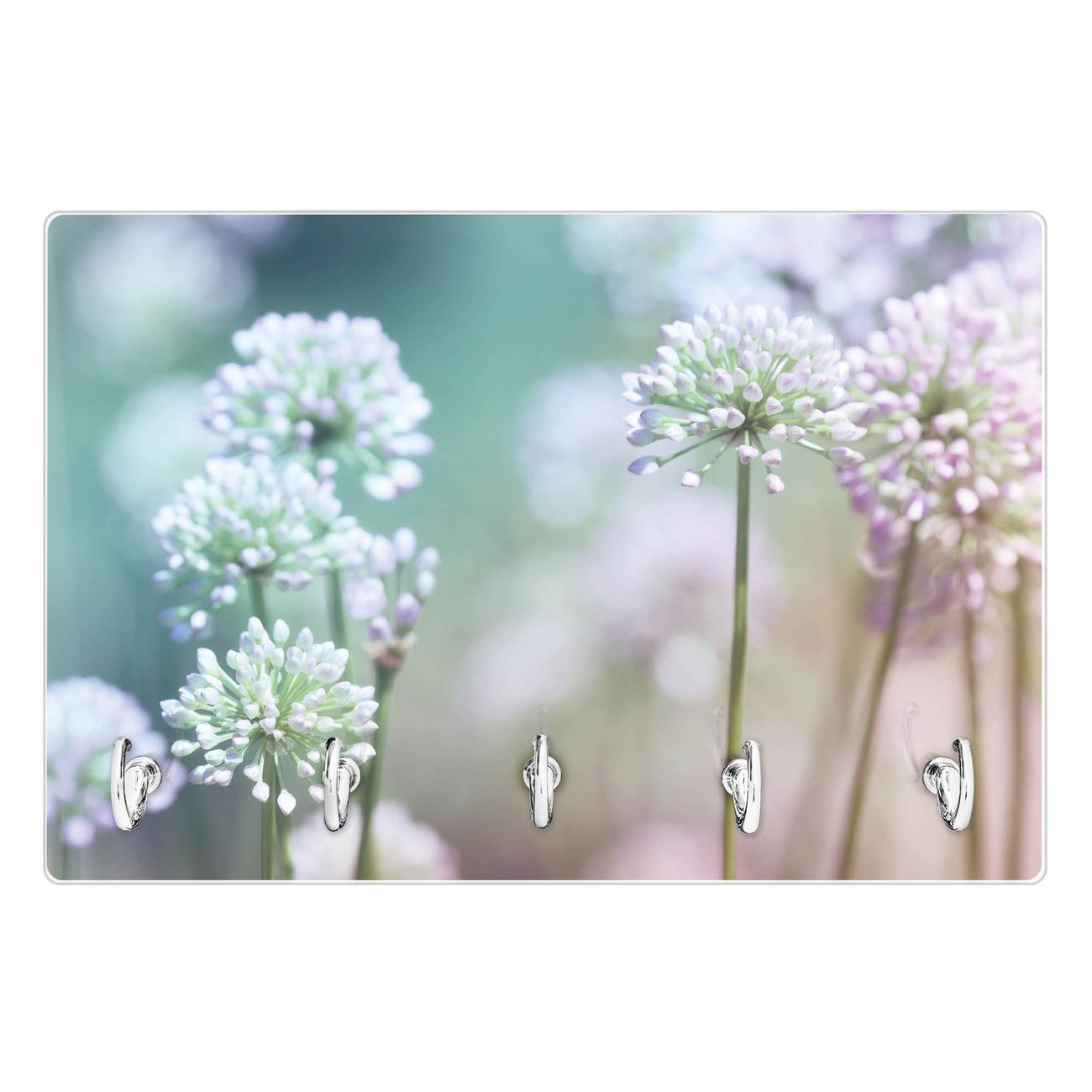 Glas Schlüsselbrett mit 5 Haken Lauchblüte
