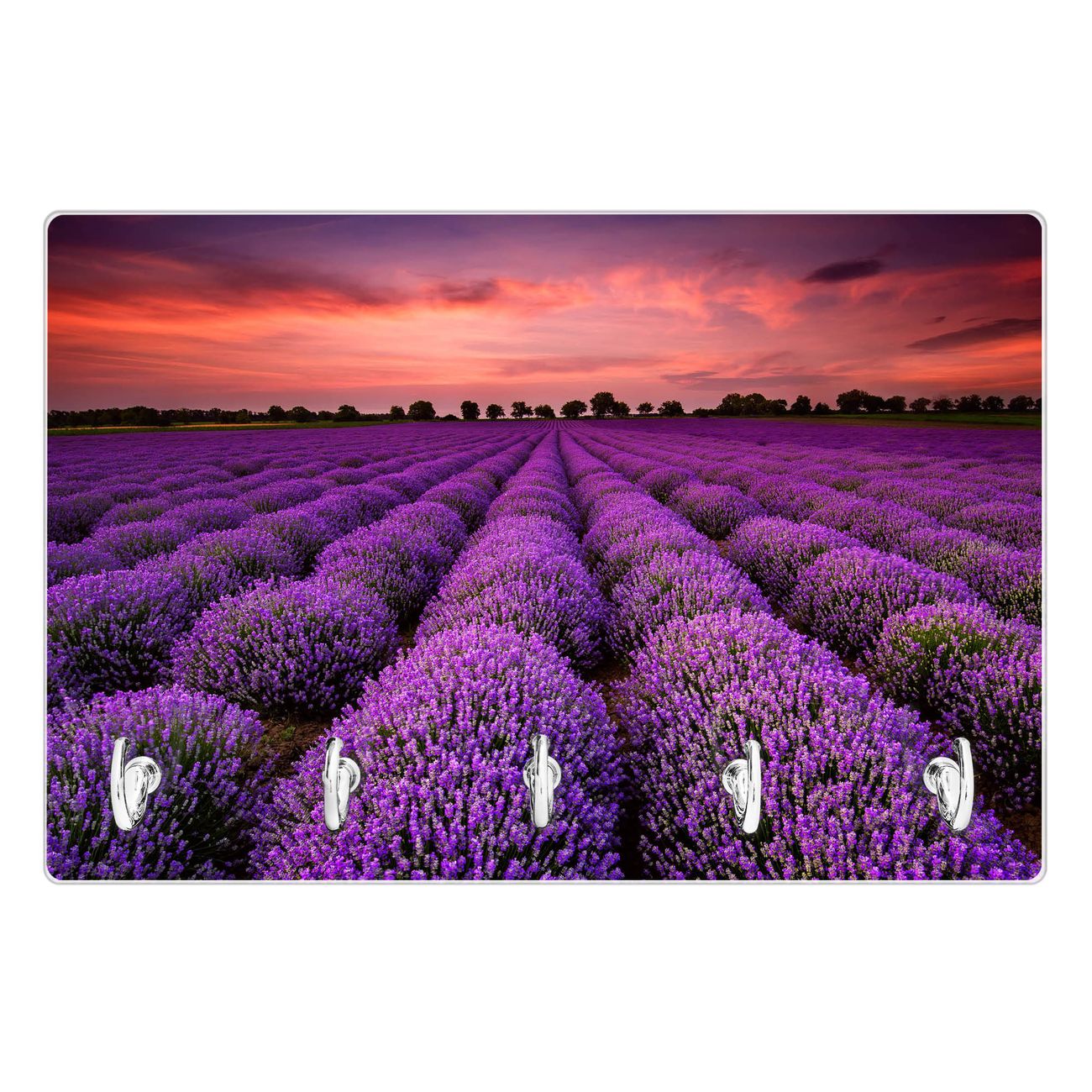 Glas Schlüsselbrett mit 5 Haken Lavendelfeld