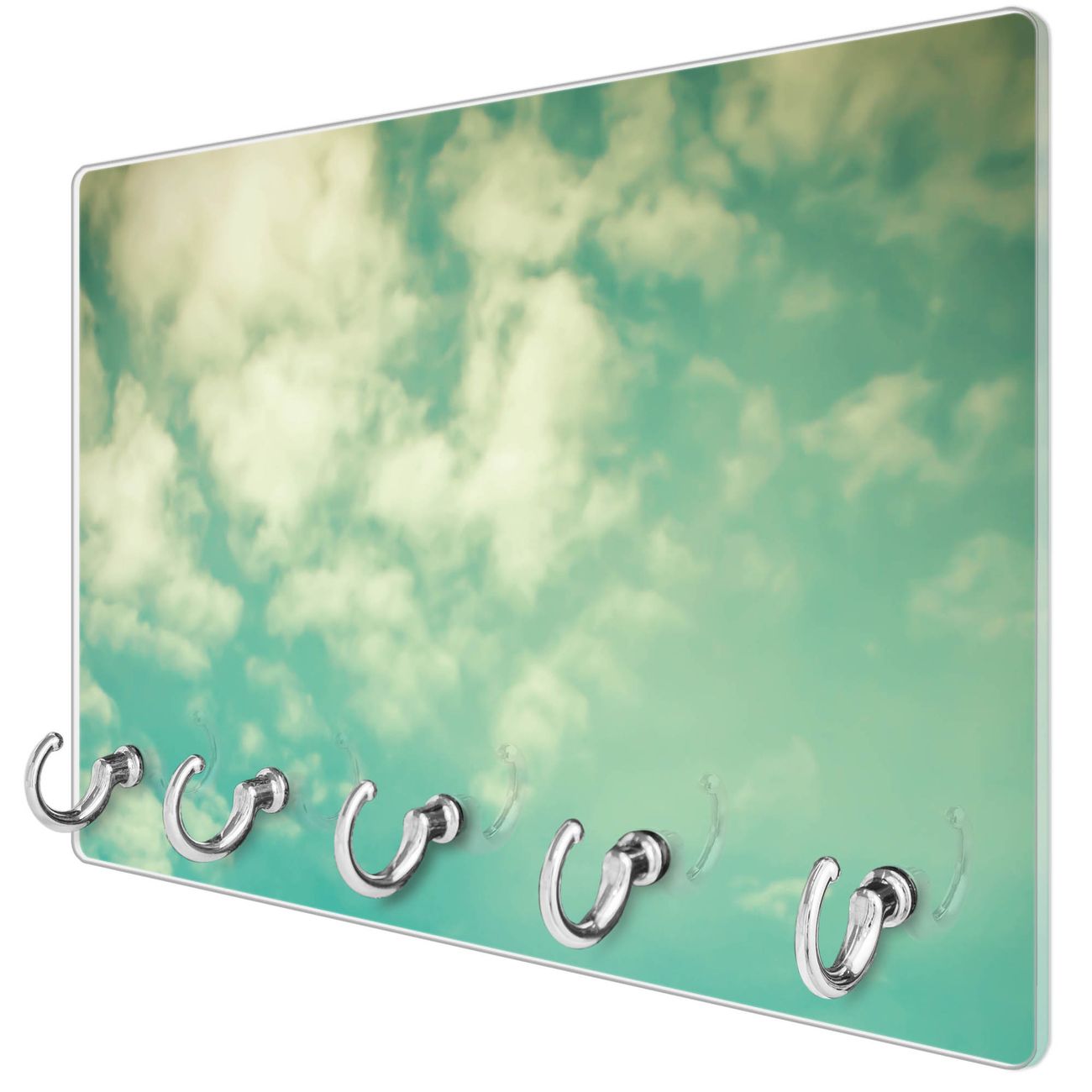 Glas Schlüsselbrett mit 5 Haken Leicht Bewölkt