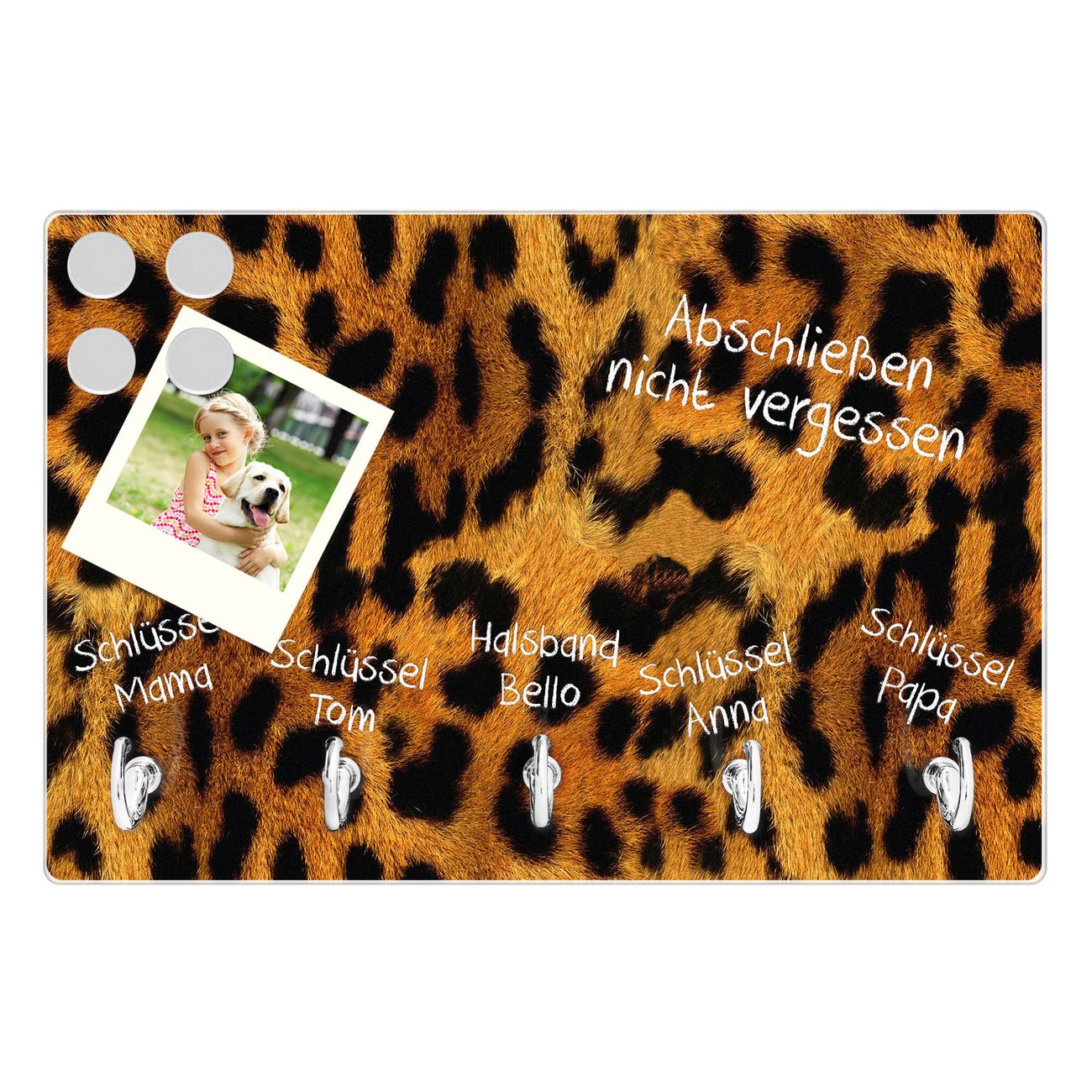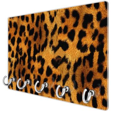 Glas Schlüsselbrett mit 5 Haken Leopard