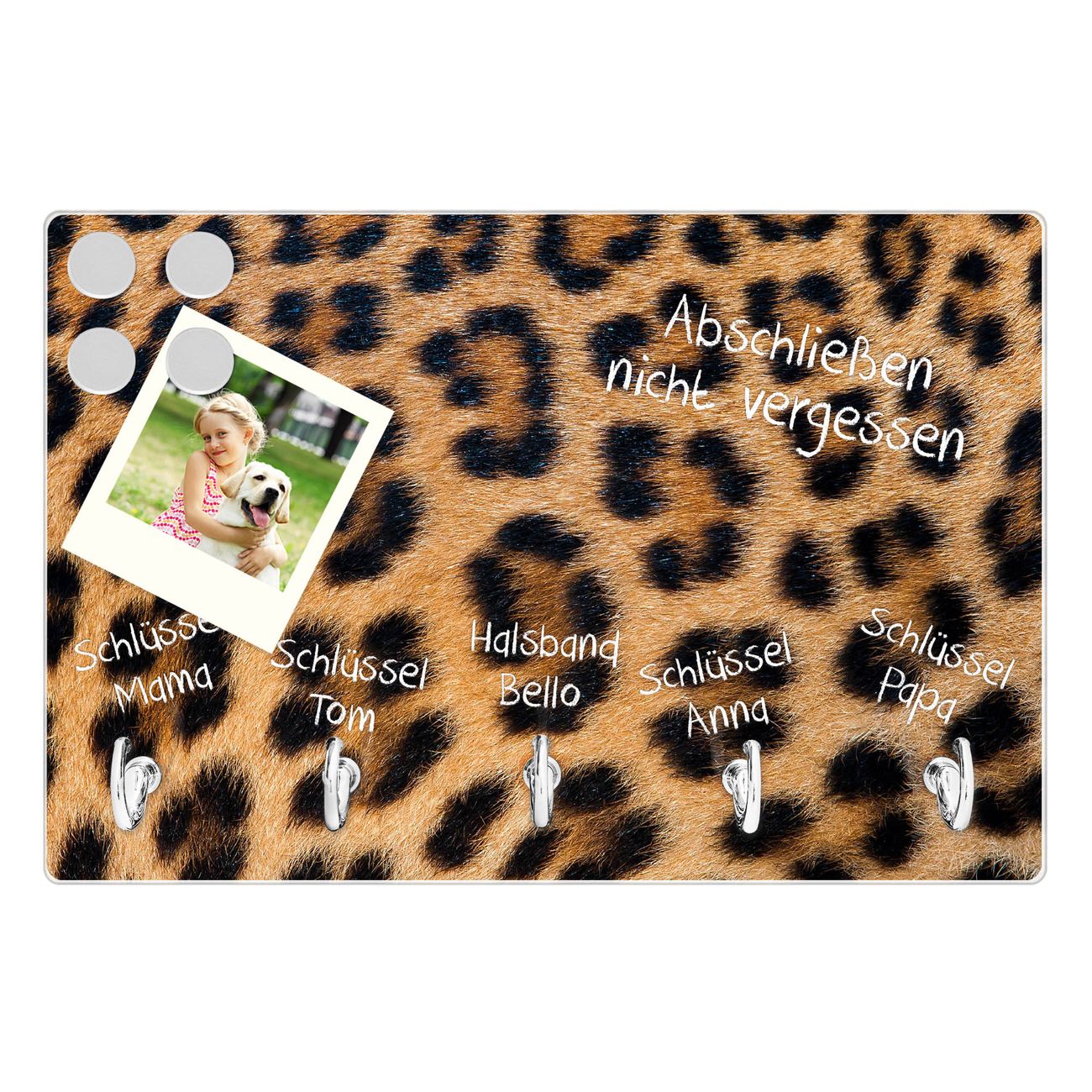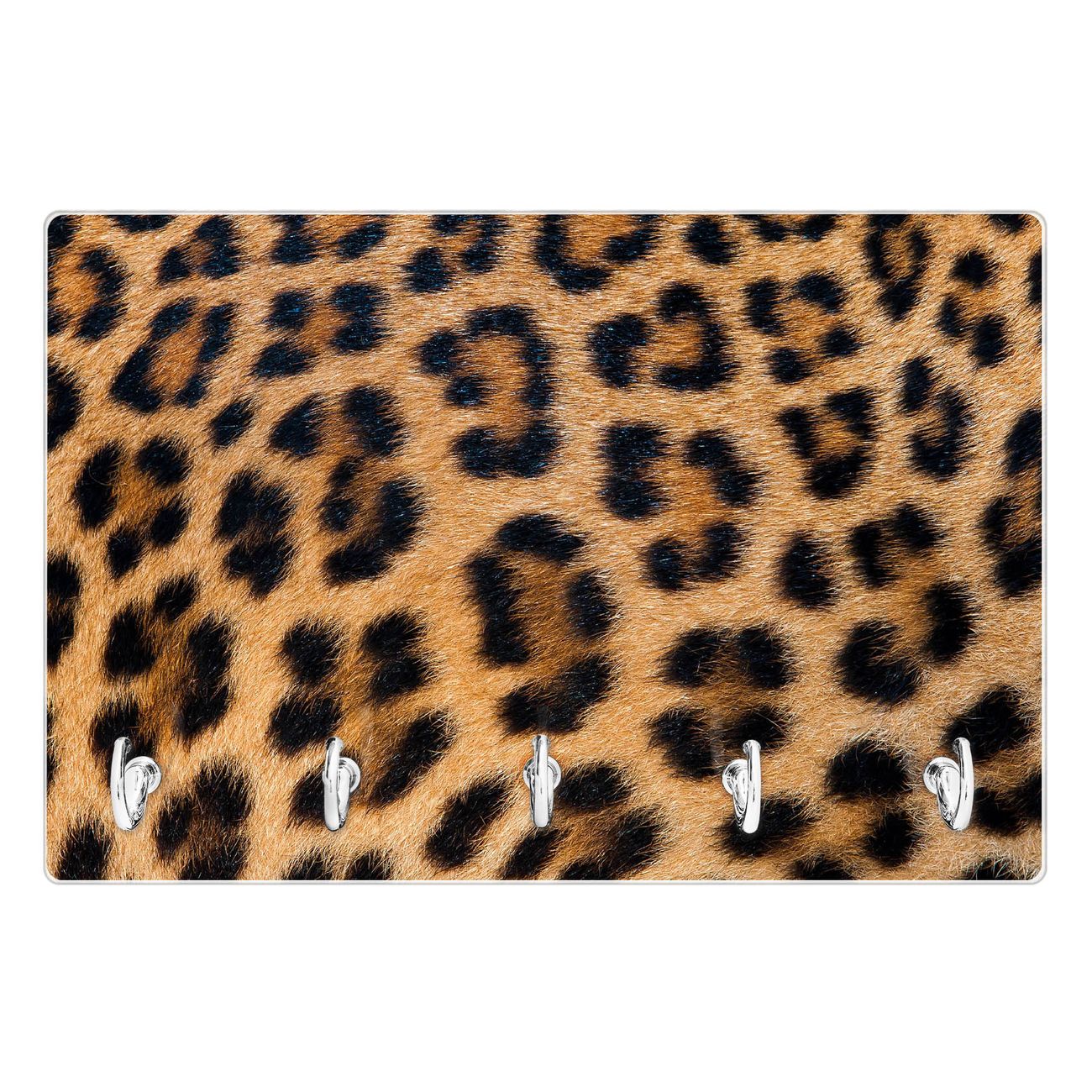 Glas Schlüsselbrett mit 5 Haken Leopardenfell