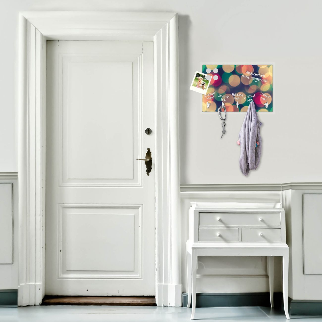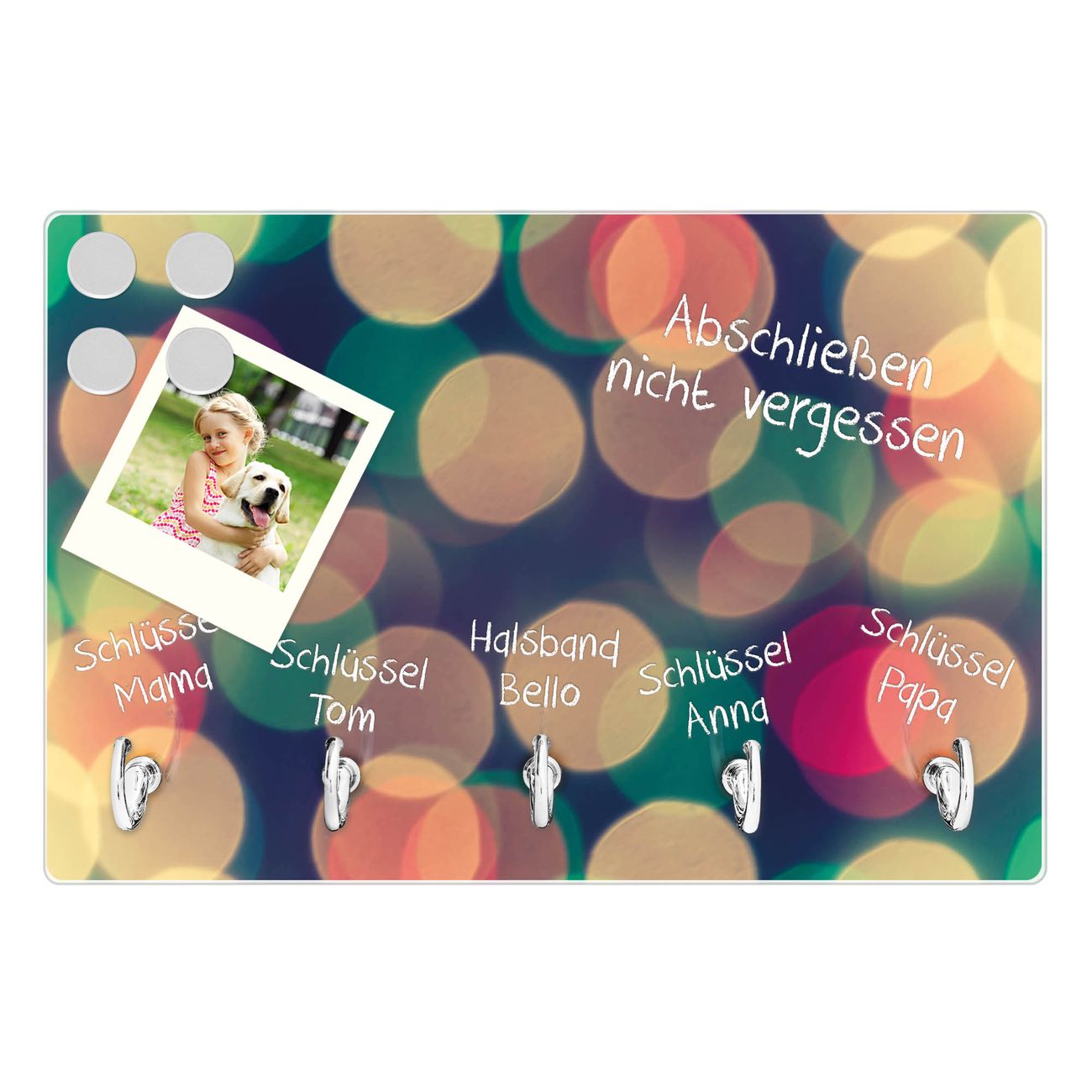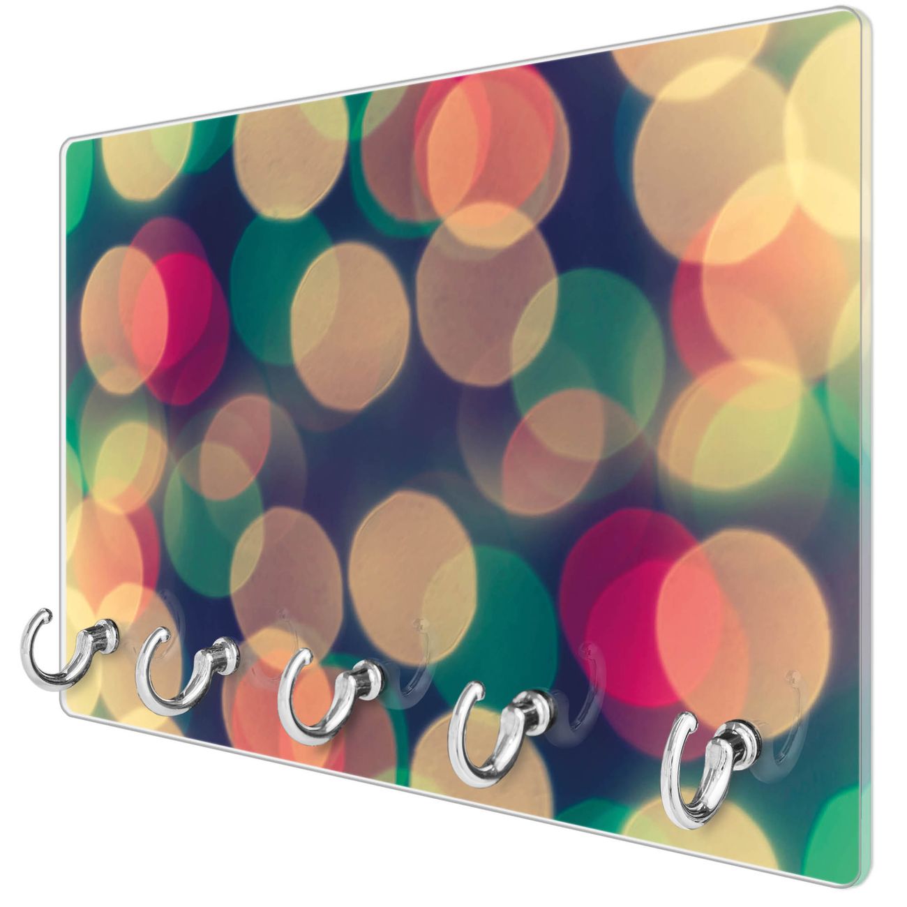 Glas Schlüsselbrett mit 5 Haken Lichtpunkte Weiß Grün Rot