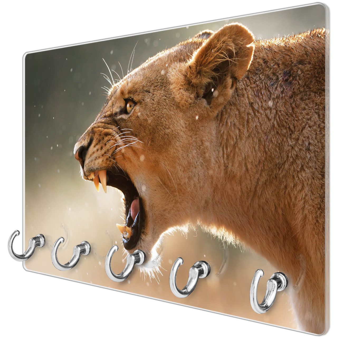 Glas Schlüsselbrett mit 5 Haken Löwin