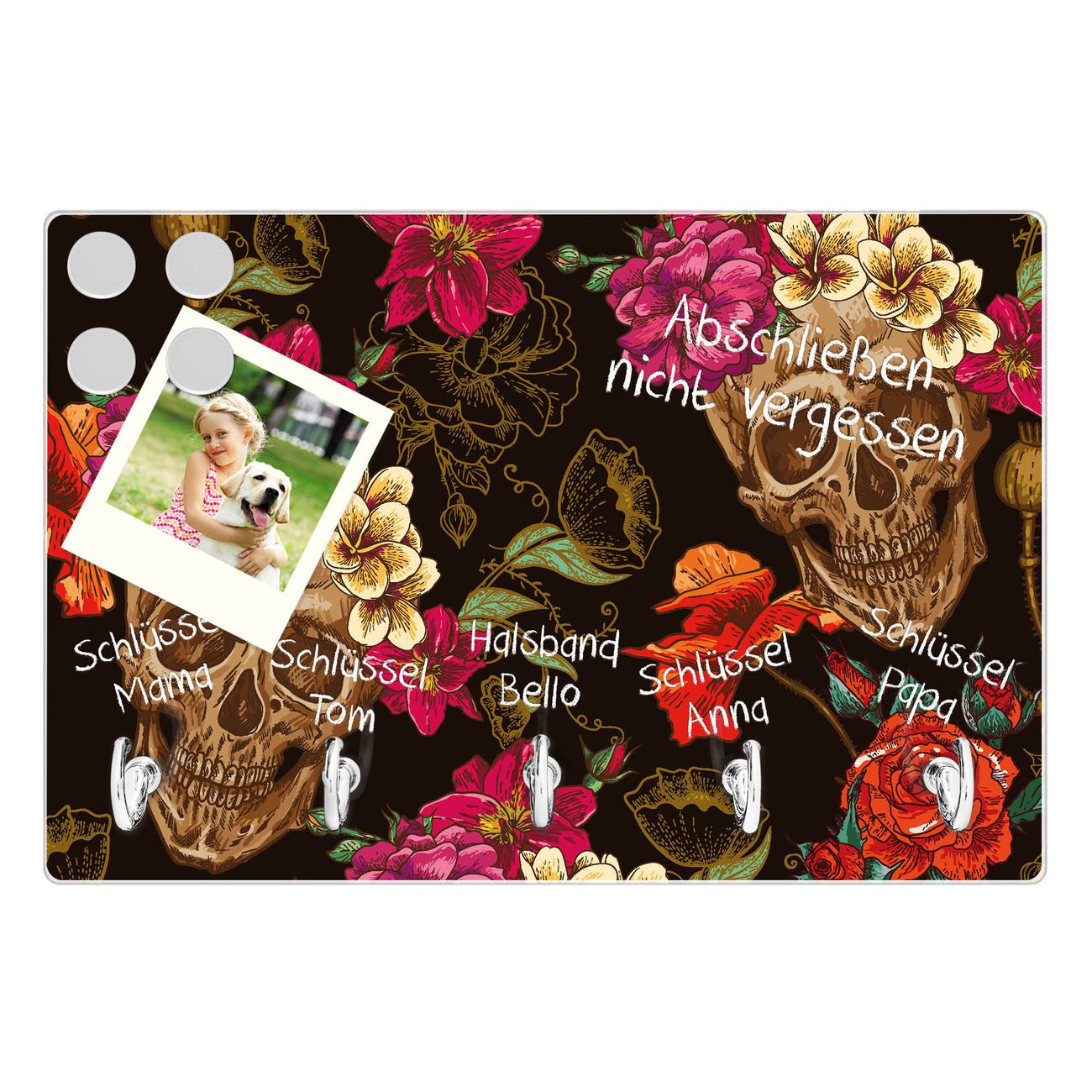 Glas Schlüsselbrett mit 5 Haken Los Dias de Muertos