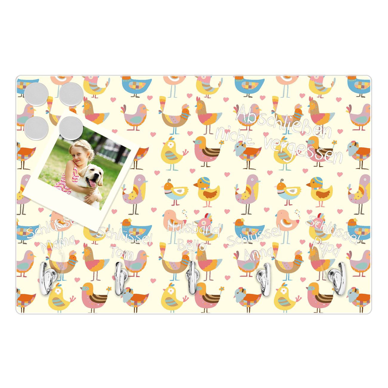 Glas Schlüsselbrett mit 5 Haken Lustige Vögel