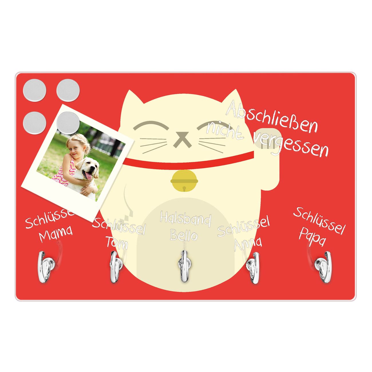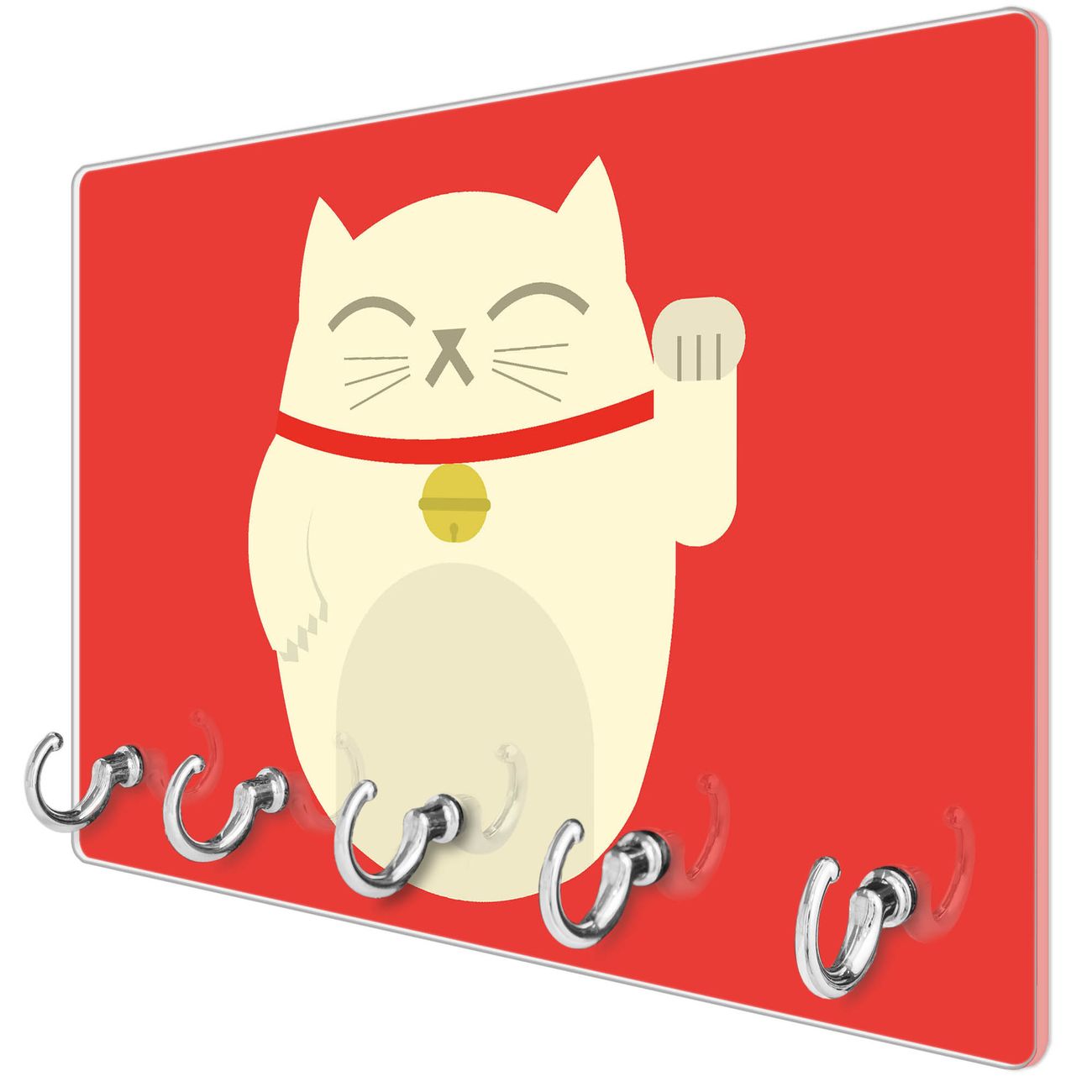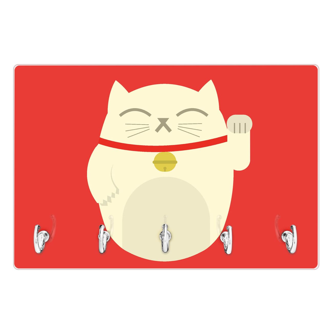 Glas Schlüsselbrett mit 5 Haken Manekineko