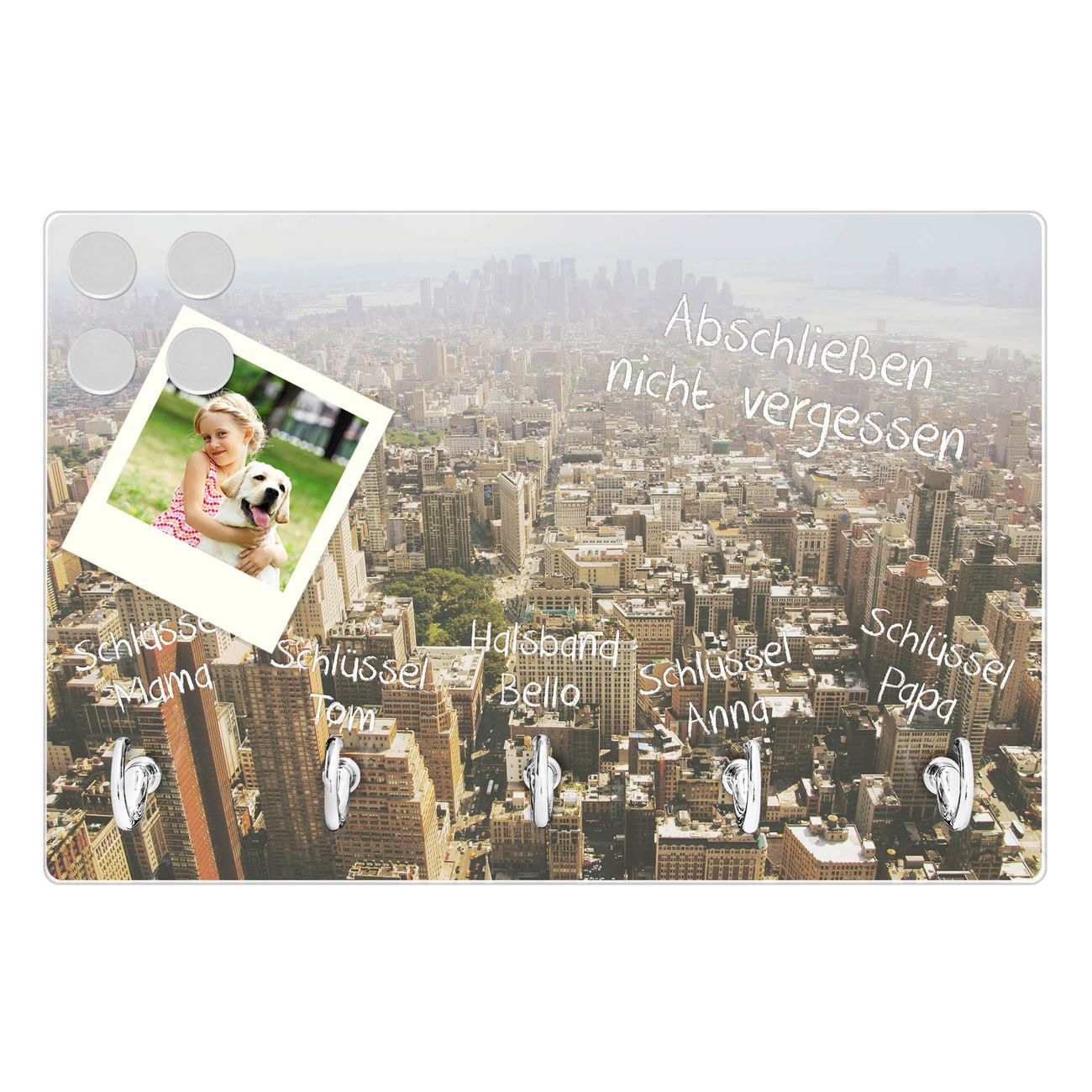 Glas Schlüsselbrett mit 5 Haken Manhattan 1