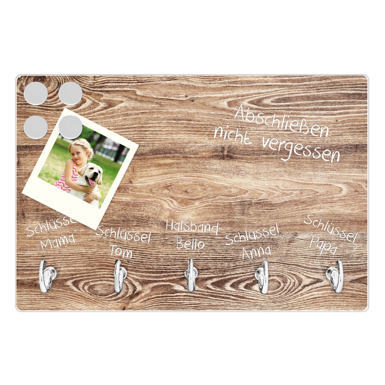 Glas Schlüsselbrett mit 5 Haken Maserung