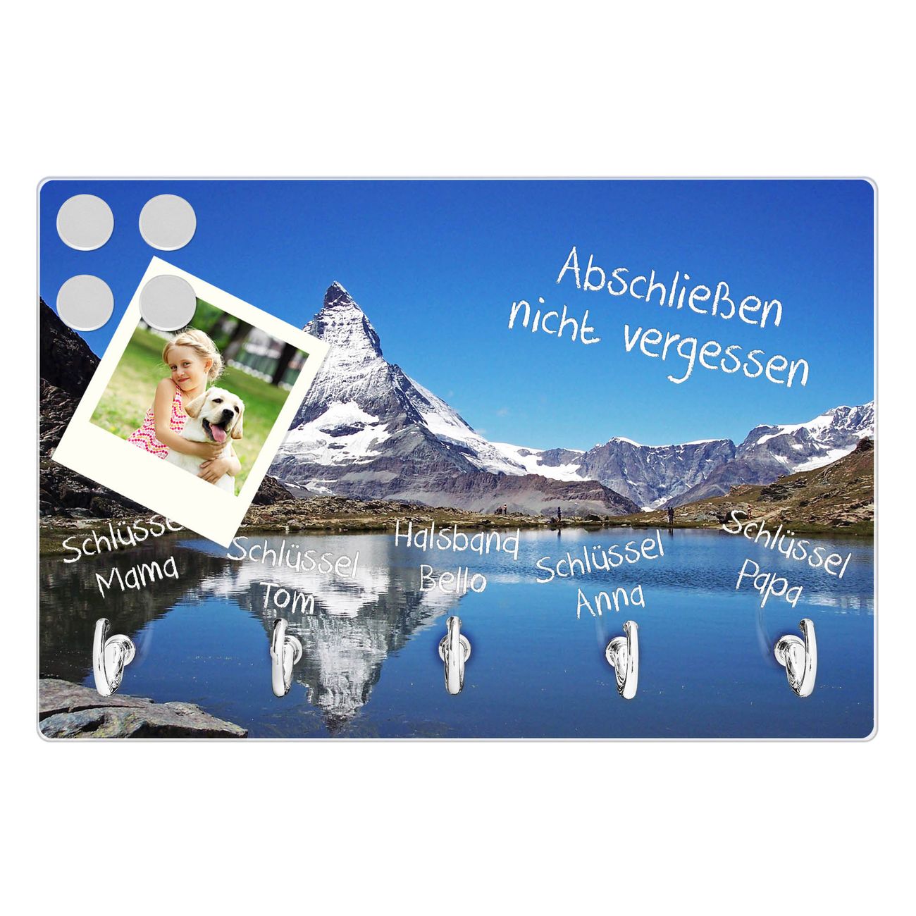 Glas Schlüsselbrett mit 5 Haken Matterhorn