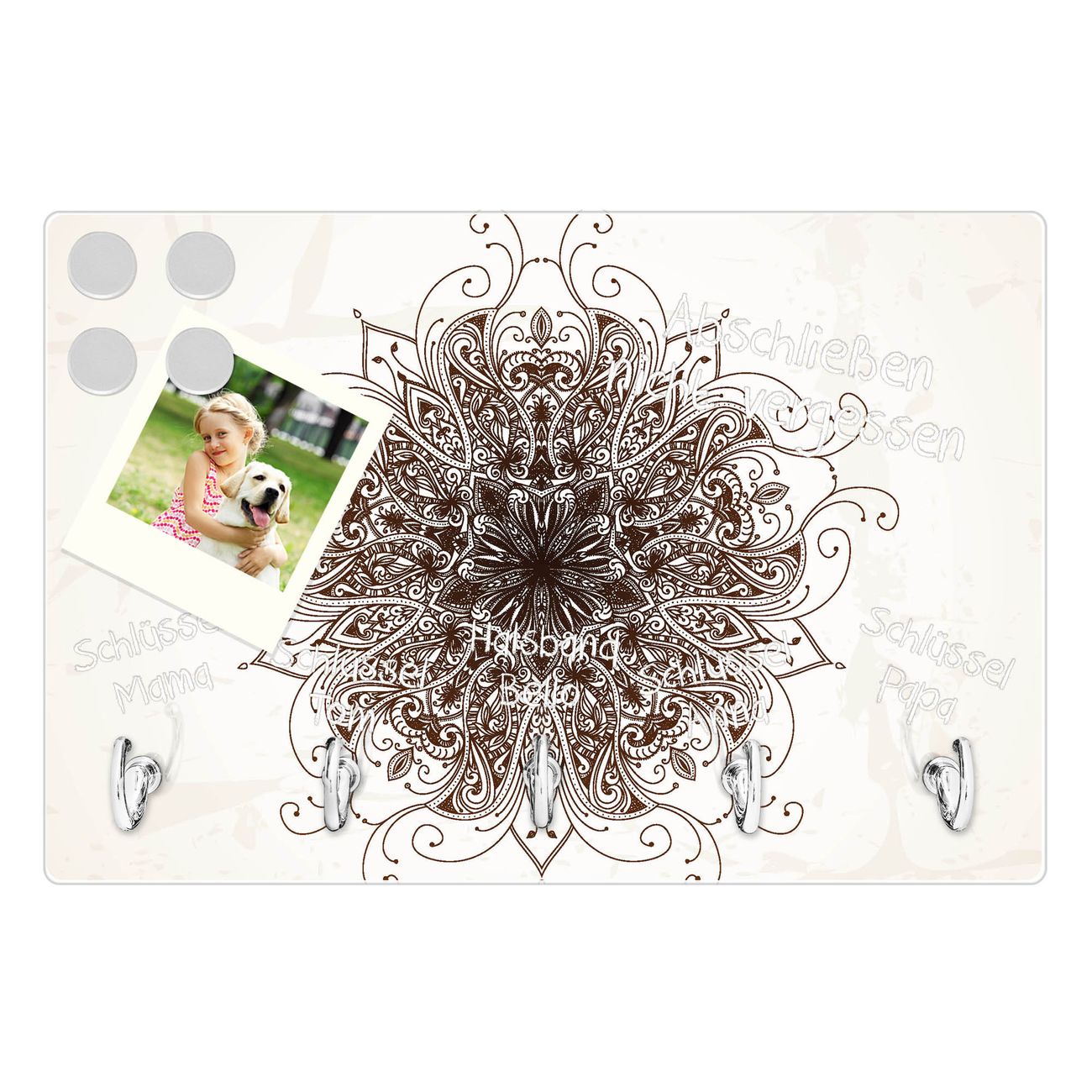 Glas Schlüsselbrett mit 5 Haken Mehendi