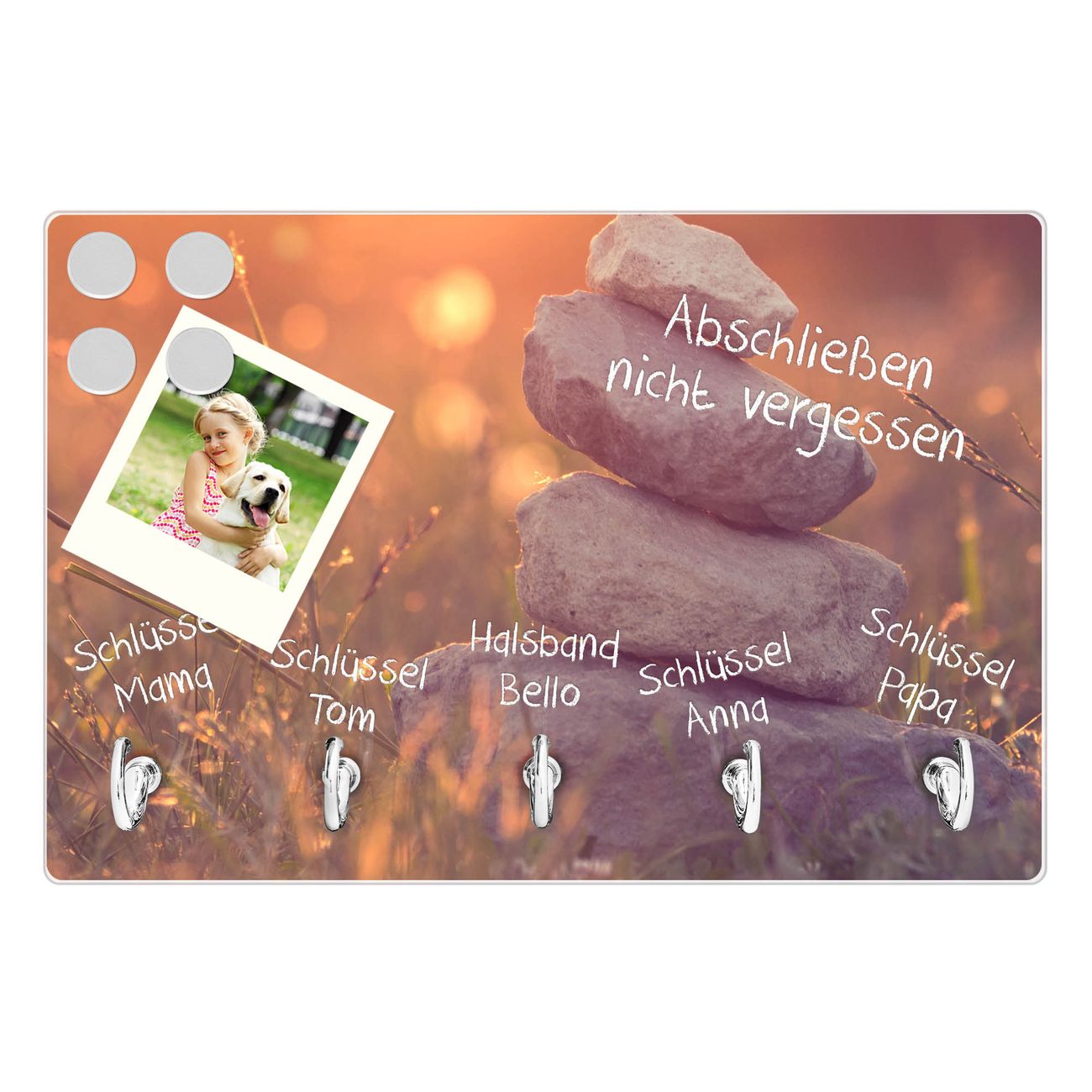 Glas Schlüsselbrett mit 5 Haken Mein Ort
