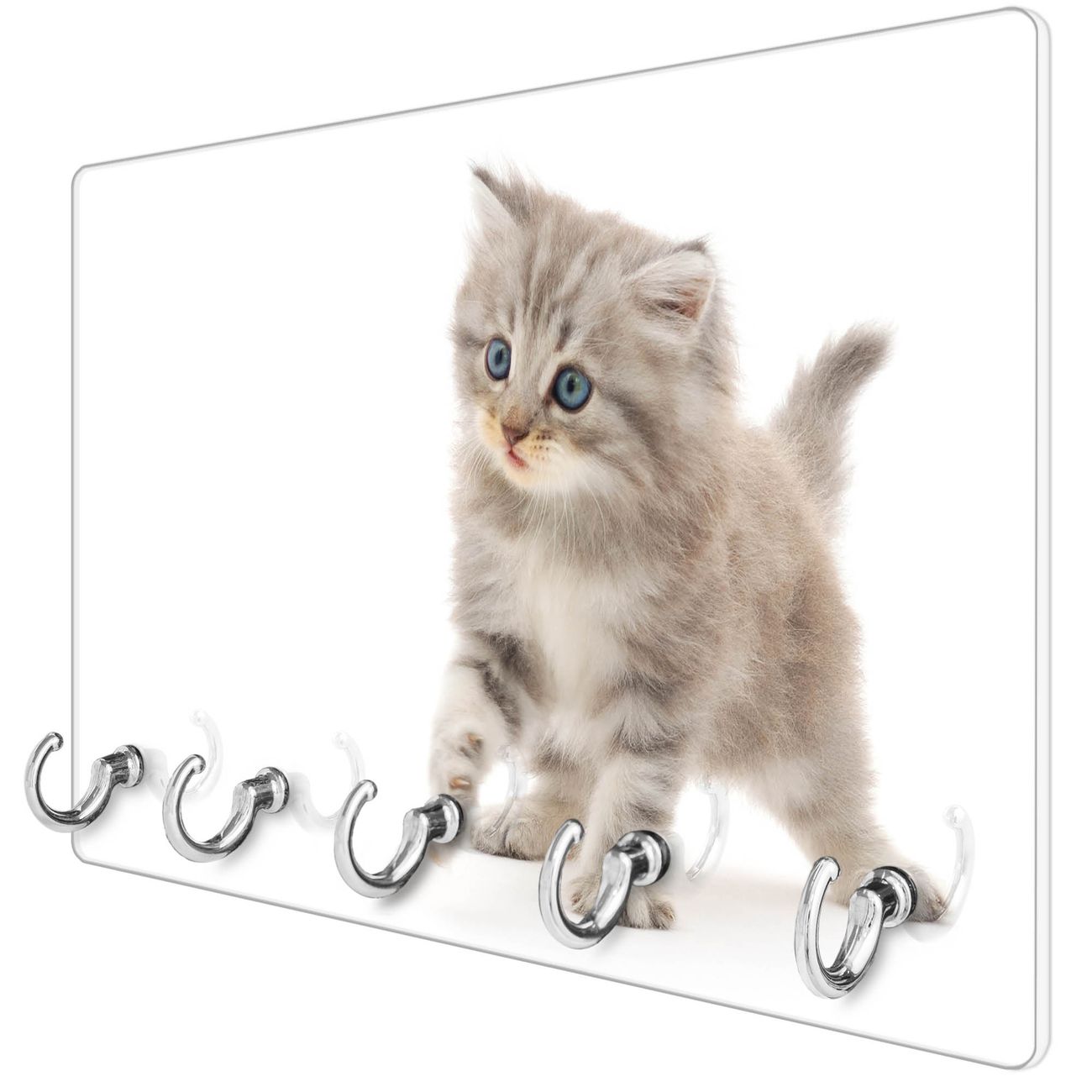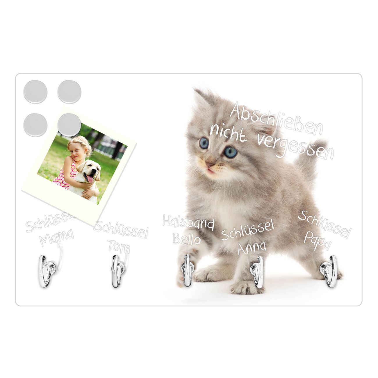FUNKTION: Mit dem banjado Schlüsselbrett Miau hat Ihre Suche nach dem Schlüsselbund endlich ein Ende! Auf gesamt 5 Haken finden auch die größten Schlüssel ihren Platz. Durch den farbenfrohen Motivdruck ist das Schlüsselboard ein Blickfang in jeder Wohnung. DESIGN: Die Schlüsselleiste mit Motiv Miau hat ein sehr ansprechendes und ausgefallenes Design. Das Glasboard besteht aus einer gehärteten Glasscheibe mit dem Motiv Ihrer Wahl. Ihre neue Schlüsselaufbewahrung ist funktionell und ein optisches Highlight. DETAILS: Das Schlüsselbrett ist 30 x 20 x 4,5 CM (BxHxT). Das ganze Board besteht aus gehärtetem Sicherheitsglas, die Haken zur Selbstmontage präsentieren sich in Edelstahl-Optik. Für einen sicheren Halt erfolgt die Aufhängung an 2 vorgefertigten Haltern an der Rückseite. Das Montagematerial fügen wir bei. NUTZEN: Hier findet alles seinen Platz: Schlüsselbunde, Geschirrtücher, Hundeleinen oder Kinderjacken. Das Glas kann mit Kreidestiften bzw. Whiteboard-Marker beschrieben werden, mit extrastarken Neodym-Magneten können Sie auch Notizen anheften. BANJADO: Wir sind ein kleines Team aus dem Herzen von Sachsen und fertigen Ihre neue Schlüsselaufbewahrung von Hand an. Sie erhalten Handarbeit und keine preiswerte Importware. Wir hoffen, dass Ihnen unsere Idee zusagt, herzlichst das banjado Team.