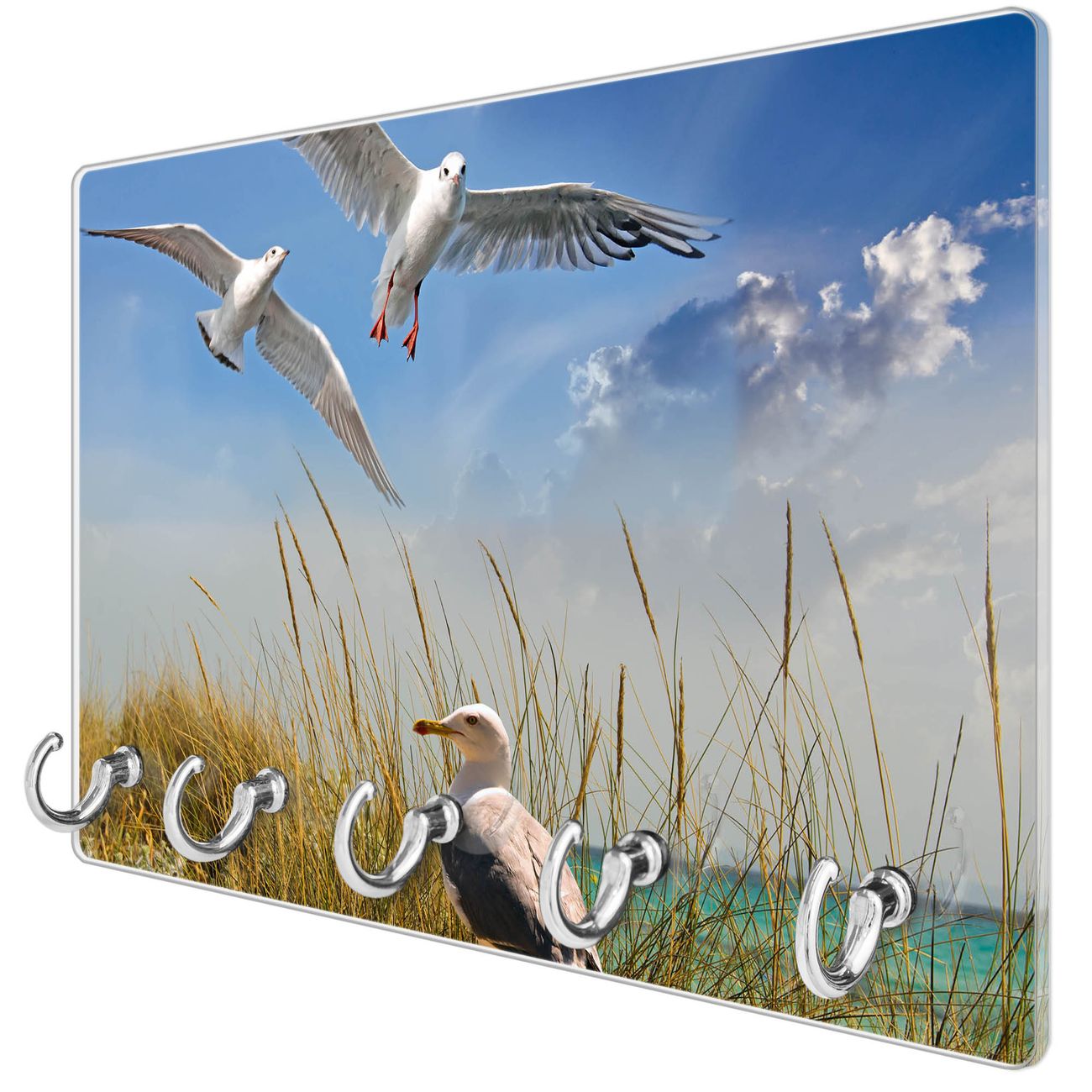 Glas Schlüsselbrett mit 5 Haken Möwen