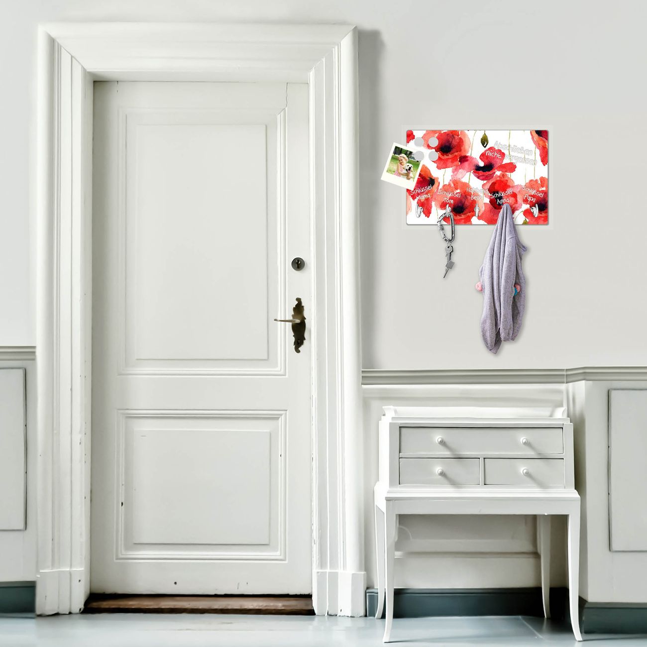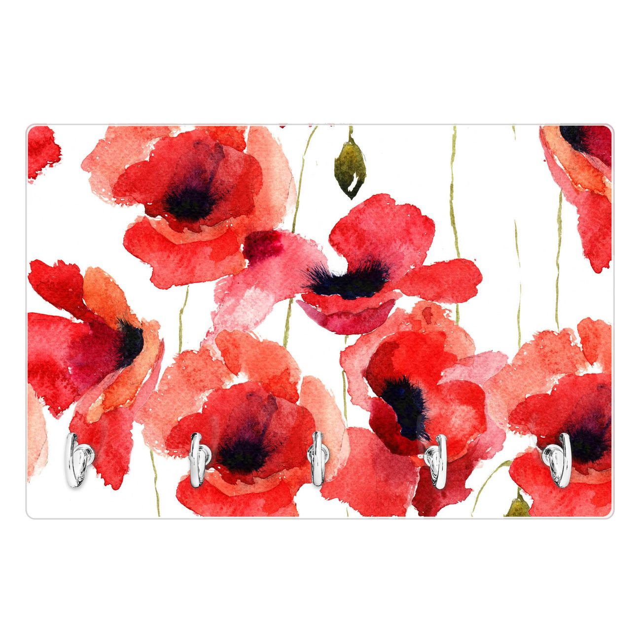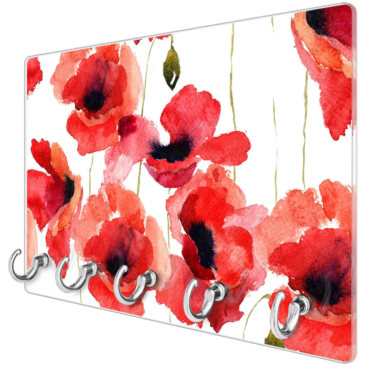 Glas Schlüsselbrett mit 5 Haken Mohn Aquarell