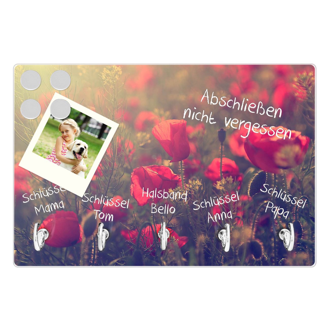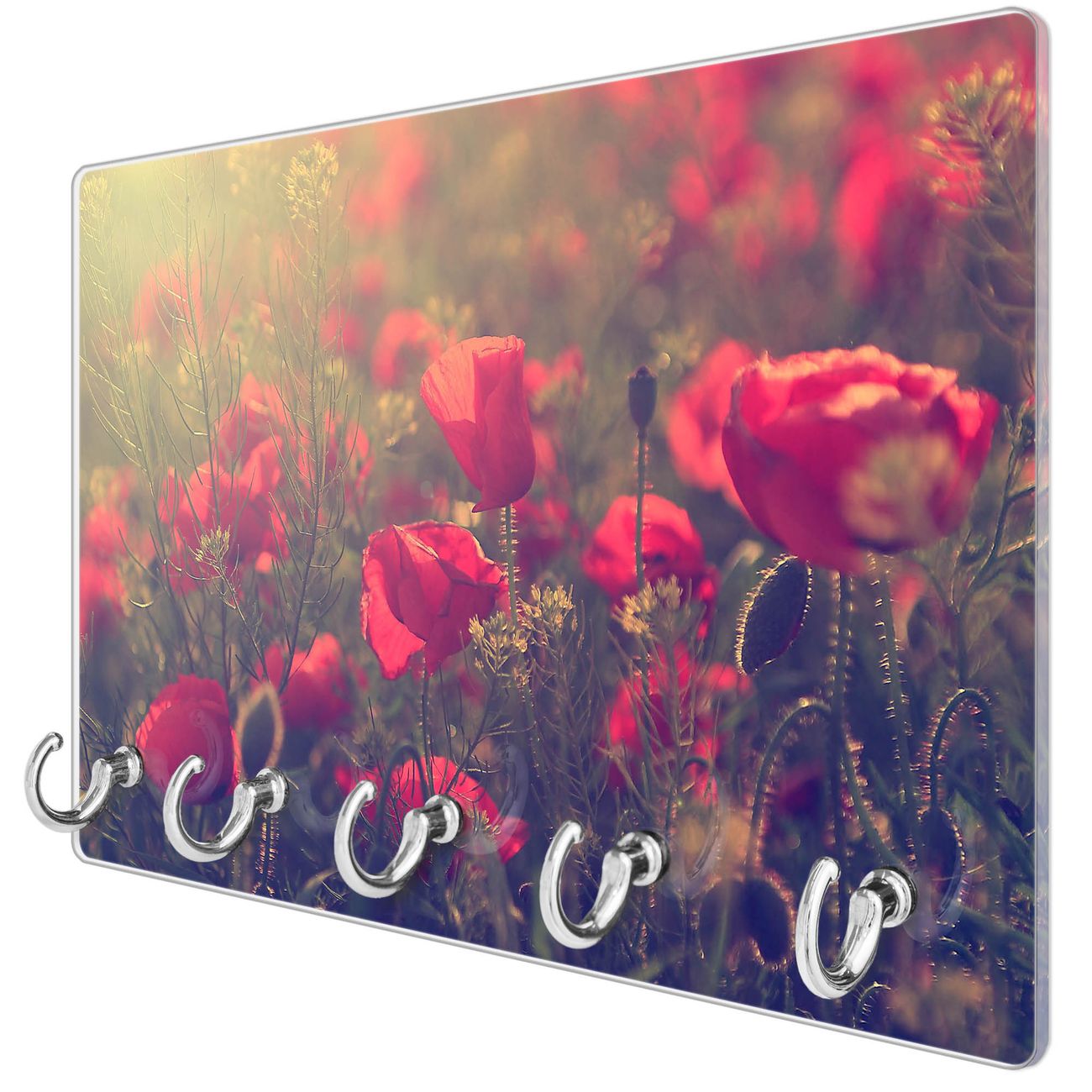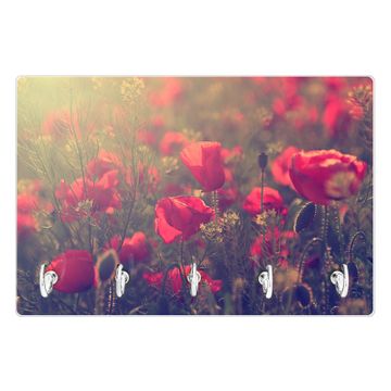 Glas Schlüsselbrett mit 5 Haken Mohn