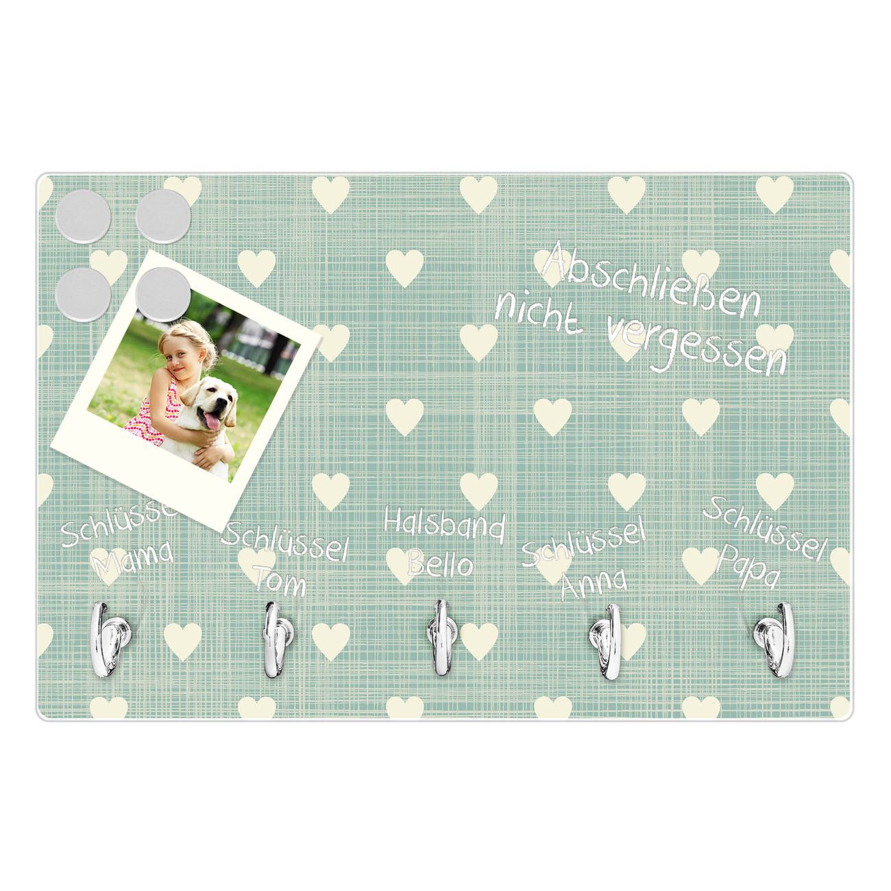 Glas Schlüsselbrett mit 5 Haken Muster Herzen